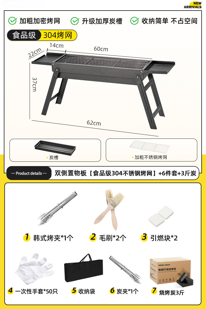 • 업그레이드 및 강화된 더블 윙 수납판 [볼드 304 스테인레스 스틸 그릴 메쉬] 무료 6종 세트 + 숯 1.5kg개