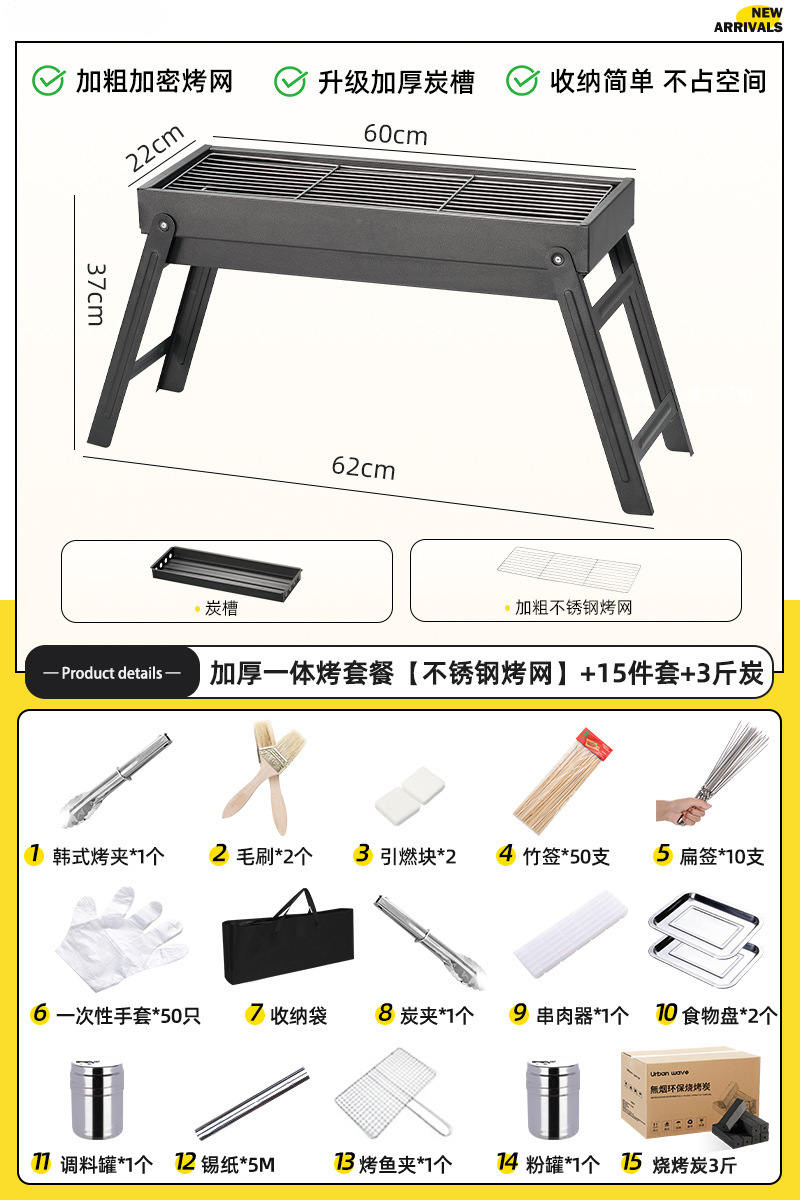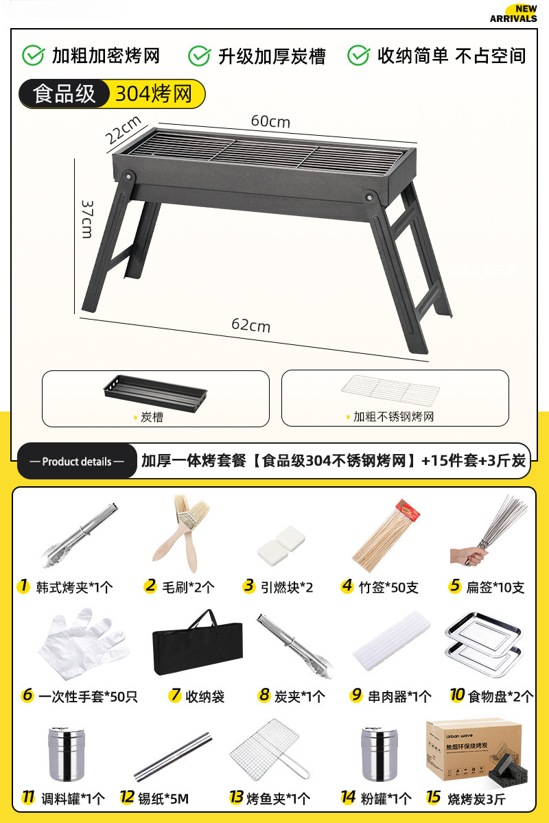 • 두꺼워진 일체형 업그레이드 및 강화 [두꺼운 304 스테인레스 스틸 그릴 메쉬] 무료 15종 세트 + 숯 1.5kg개