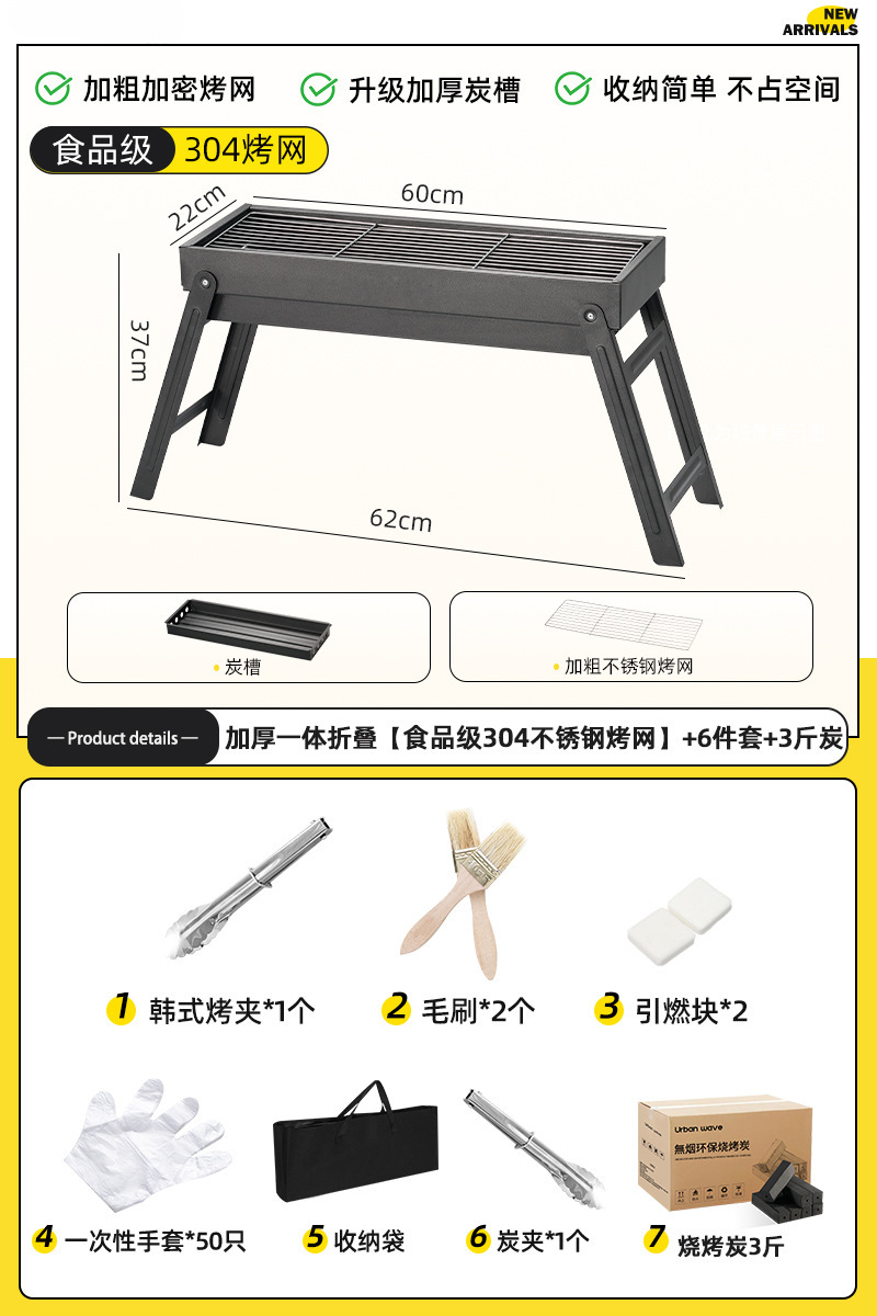 • 두꺼워진 일체형 업그레이드 및 강화 [두꺼운 304 스테인레스 스틸 그릴 메쉬] 무료 6종 세트 + 숯 1.5kg개