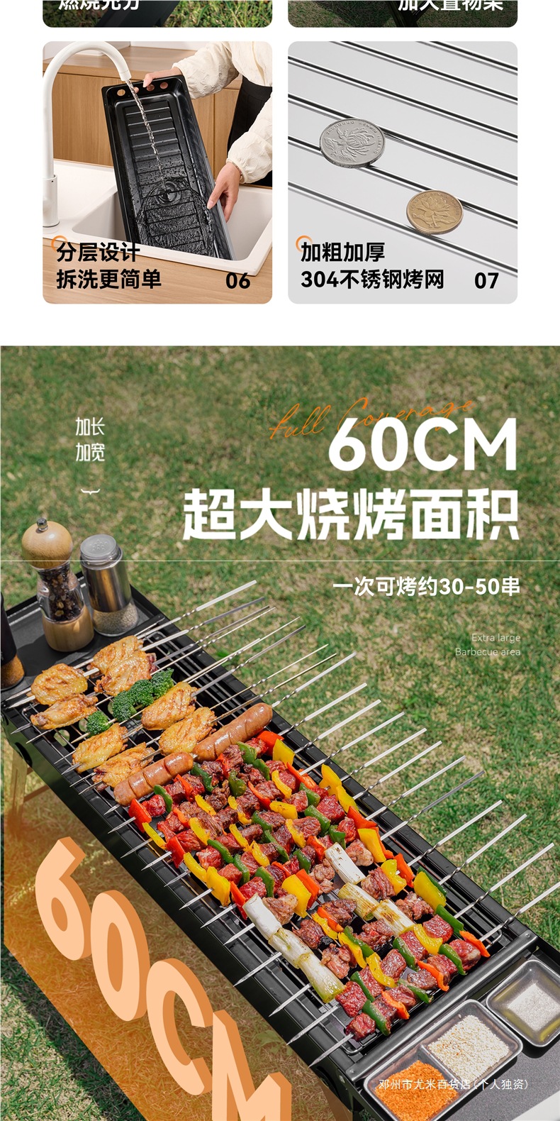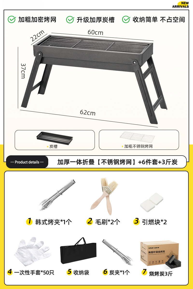 • 두꺼워진 일체형 업그레이드 및 강화 [두꺼운 스테인레스 스틸 그릴 메쉬] 무료 6종 세트 + 숯 1.5kg개