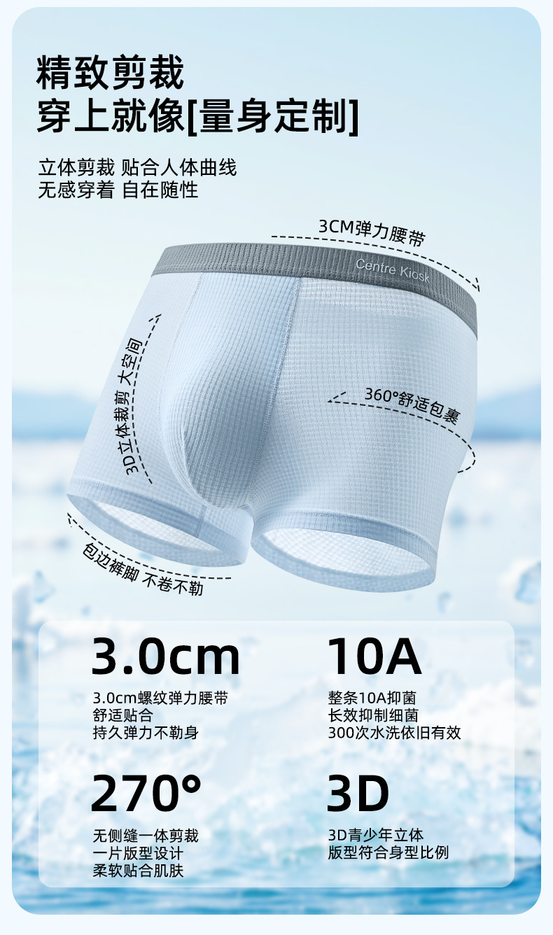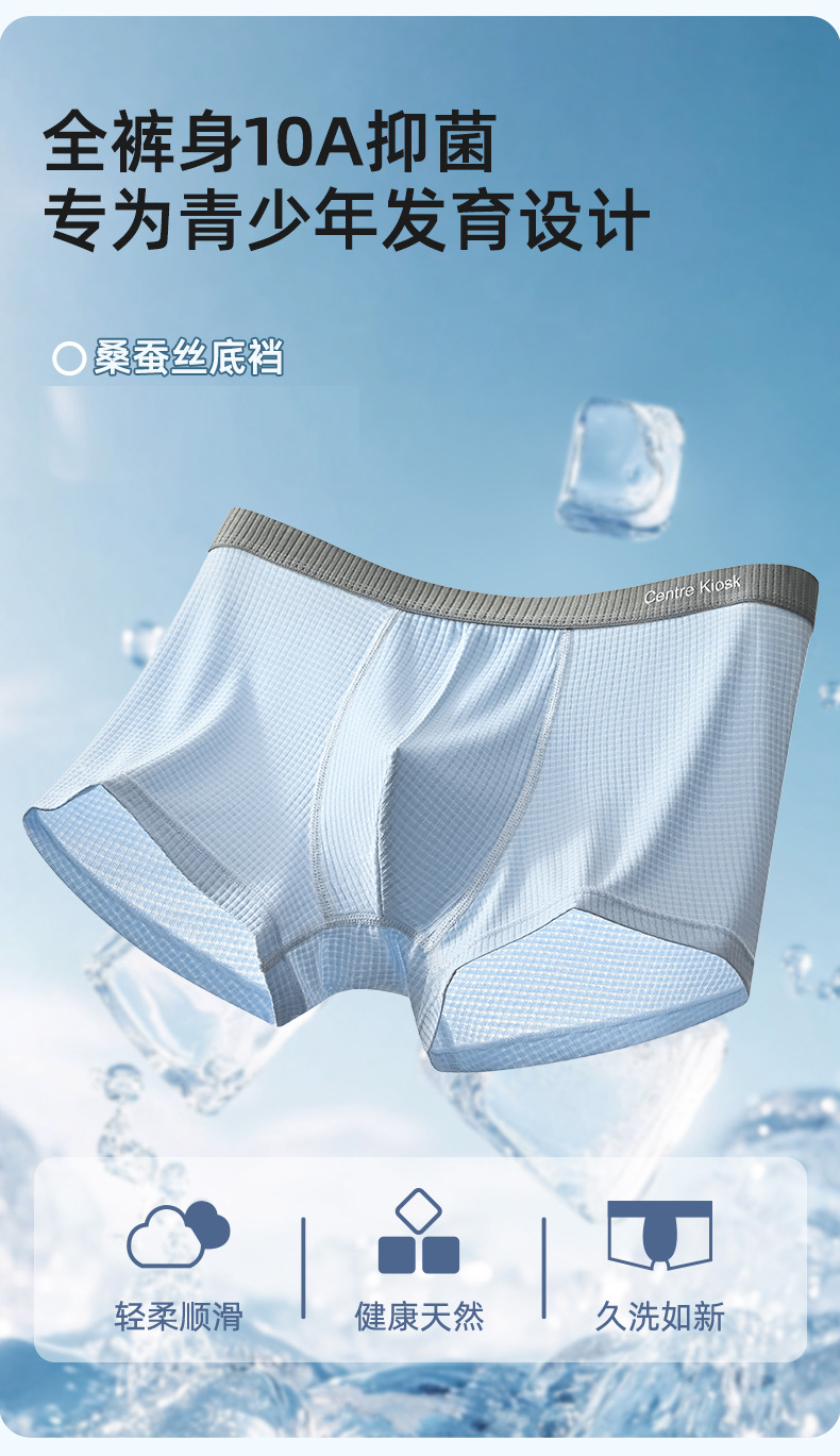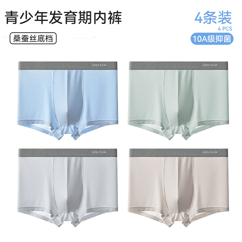 청소년 속옷, 남성 발달 기간 복서 브리프, 고등학생, 중학생, 소년, 통기성 항균 얼음 실크 반바지스토어 가기