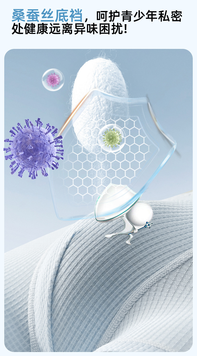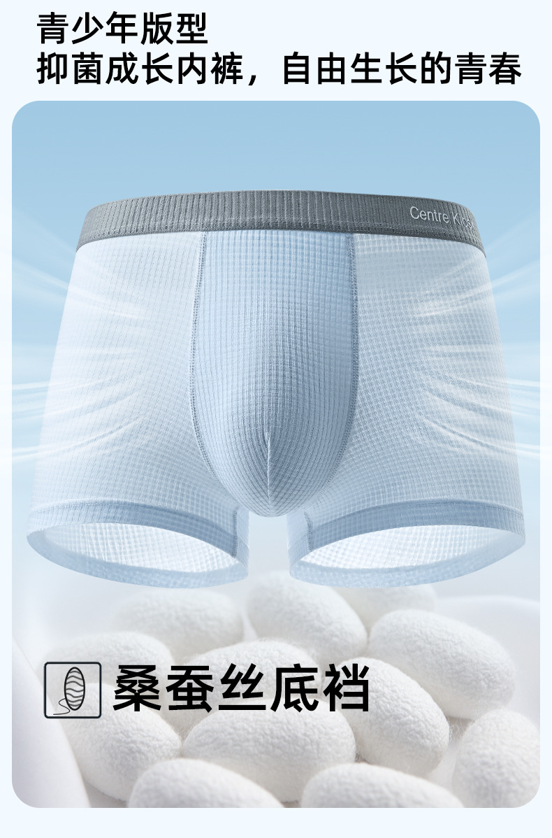 청소년 속옷, 남성 발달 기간 복서 브리프, 고등학생, 중학생, 소년, 통기성 항균 얼음 실크 반바지