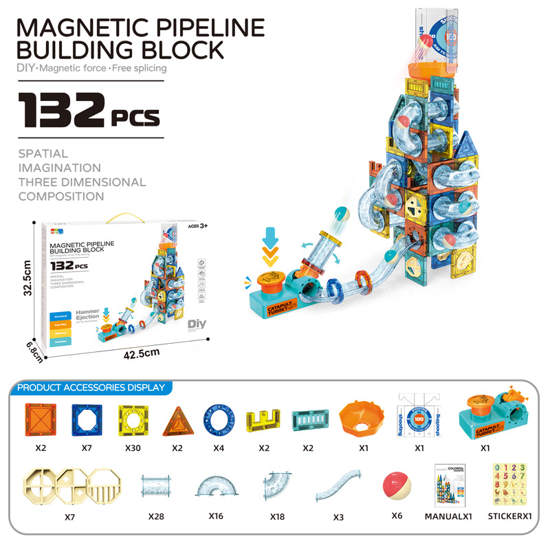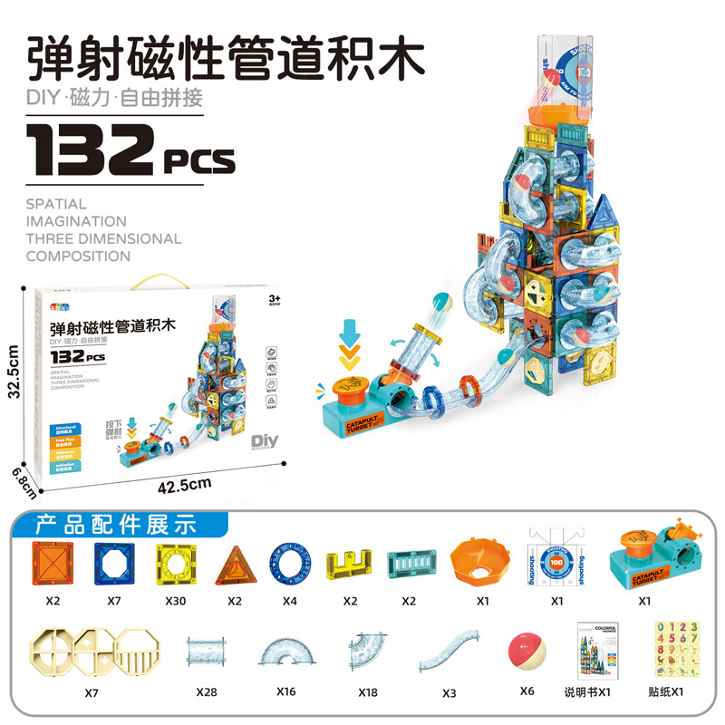 • 방출 자기 트랙 빌딩 블록 132PCS [중국 색상 상자]