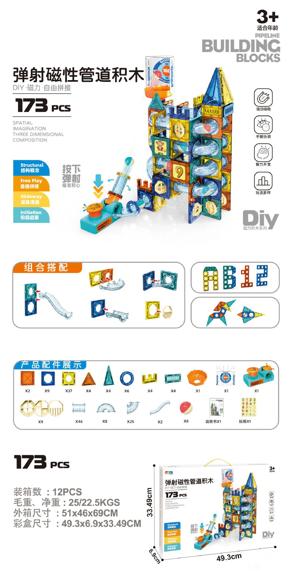 • 방출 자기 트랙 빌딩 블록 173PCS [중국 색상 상자]