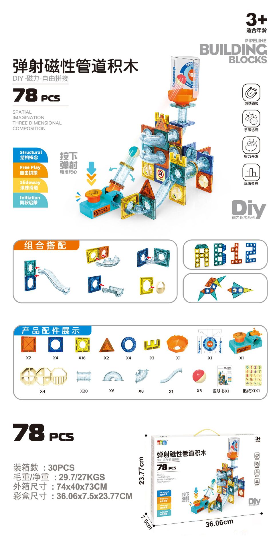 • 방출 자기 트랙 빌딩 블록 78PCS [중국 색상 상자]