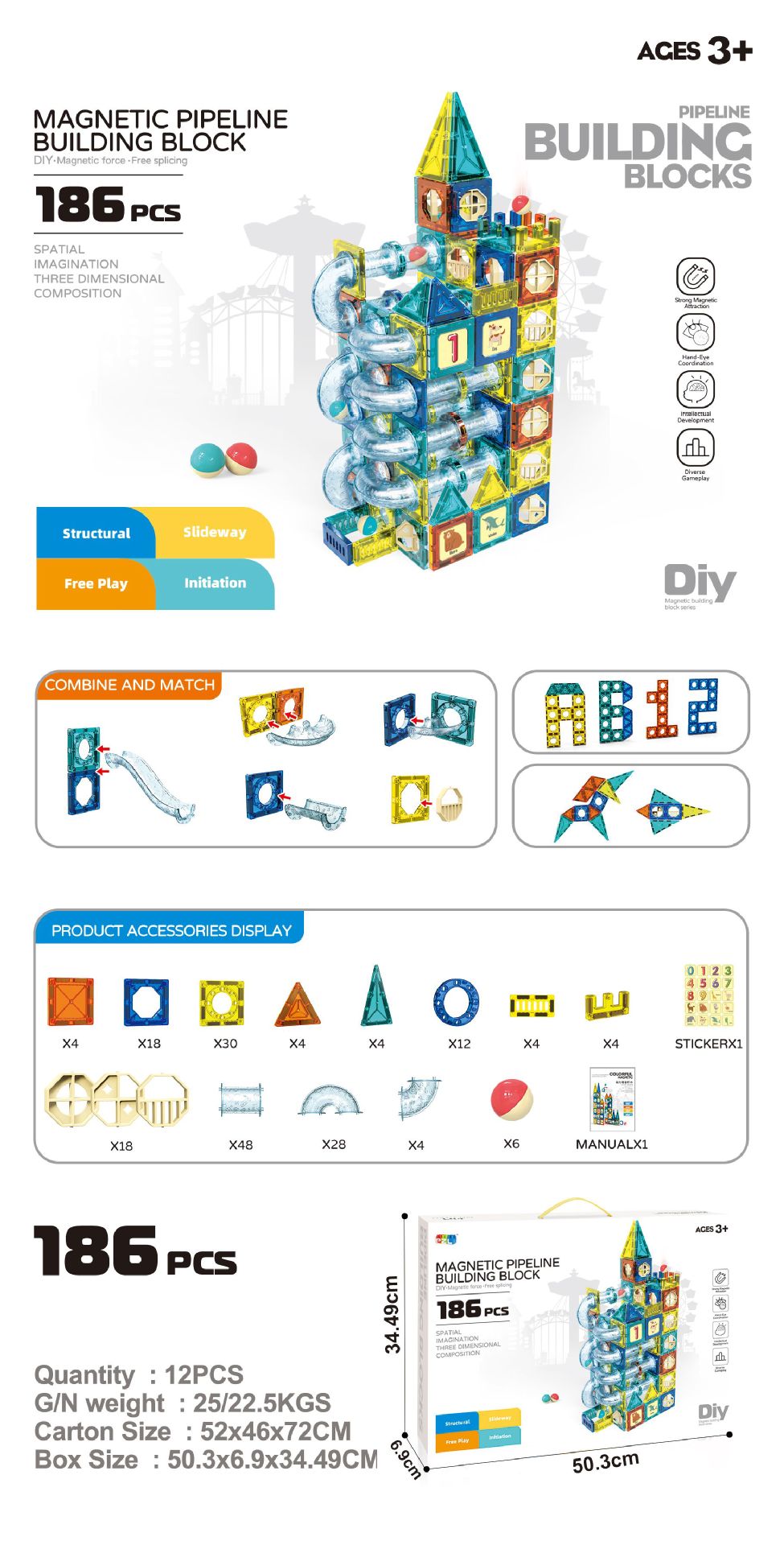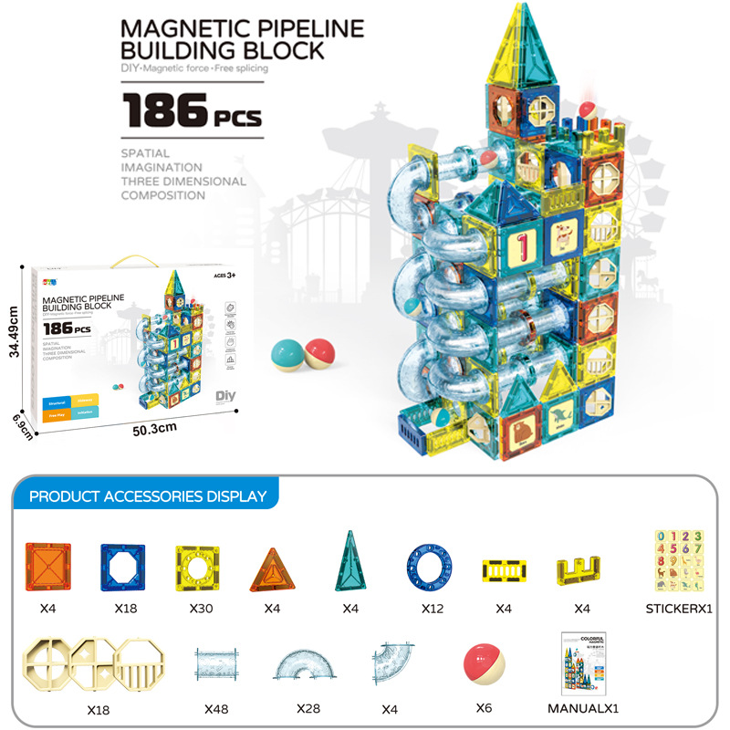 • 방출 자기 트랙 빌딩 블록 186PCS [영어 색상 상자]