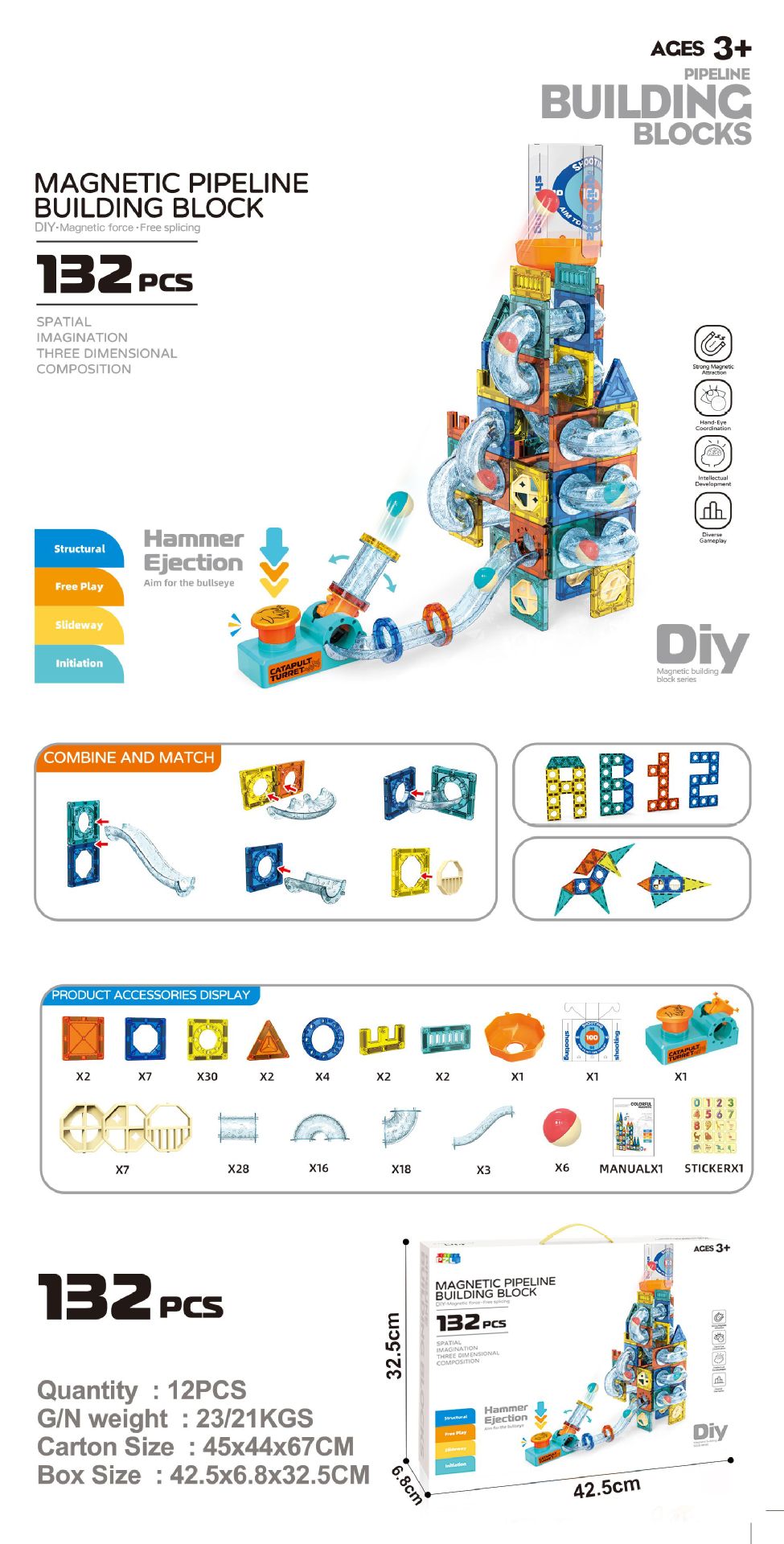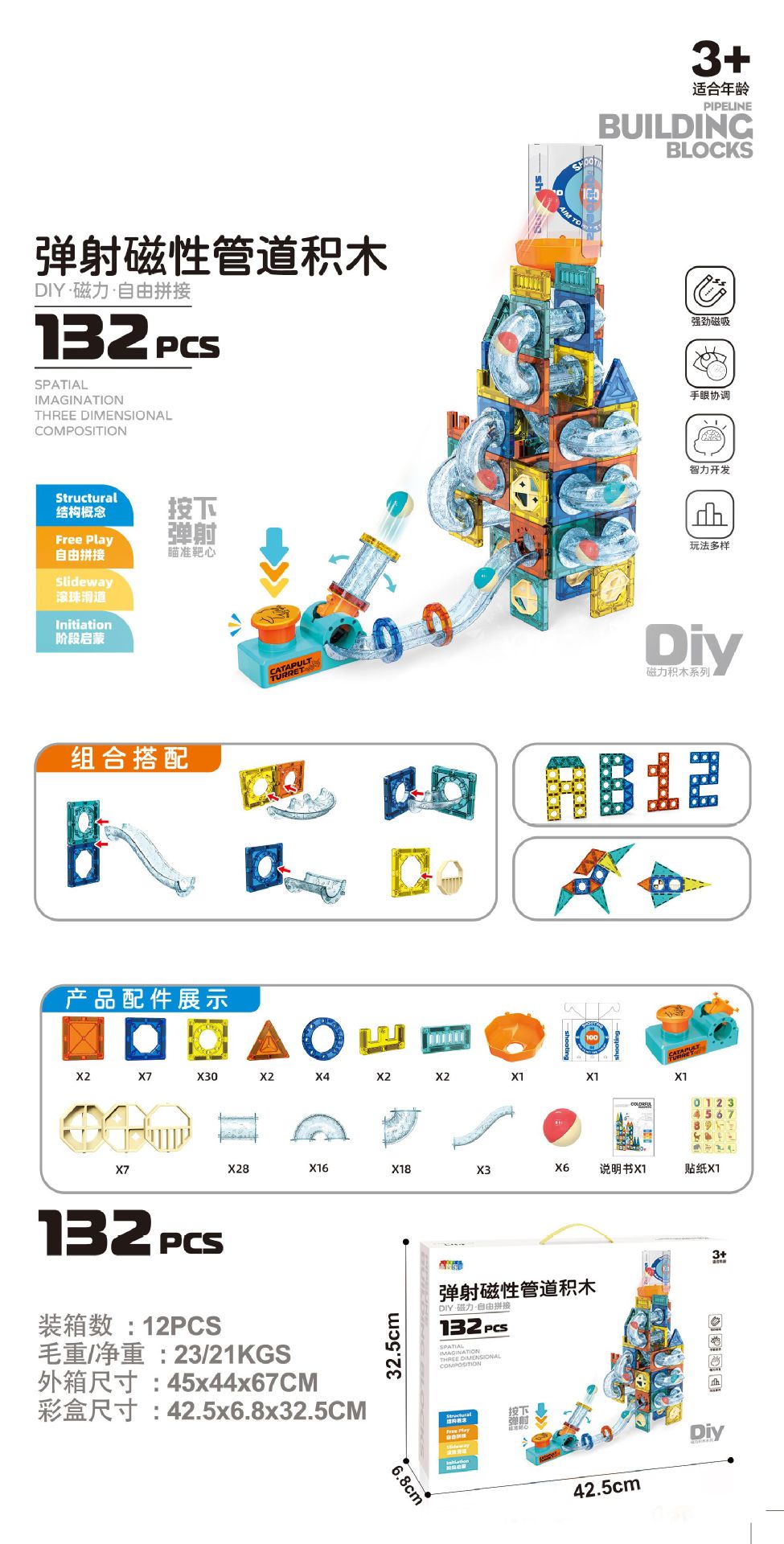 국경 간 아마존 마그네틱 시트 강력한 자기 발사 자기 트랙 빌딩 블록 볼 교육 빌딩 블록 장난감 공장 직접 판매