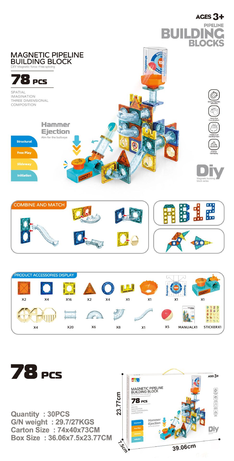 • 방출 자기 트랙 빌딩 블록 78PCS [영어 색상 상자]