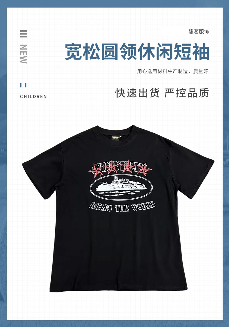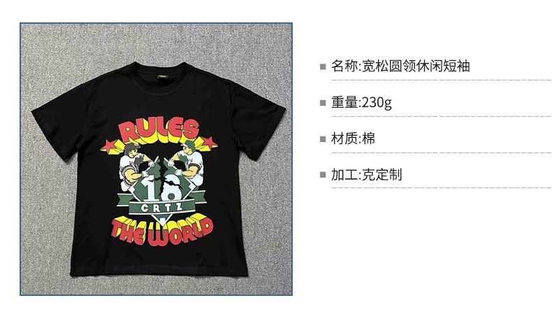 느슨한 둥근 목 캐주얼 짧은 소매 미국 거리 하이 스트리트 유럽과 미국 스타일의 힙합 남성과 여성 캐주얼 티셔츠 짧은 소매 도매스토어 가기