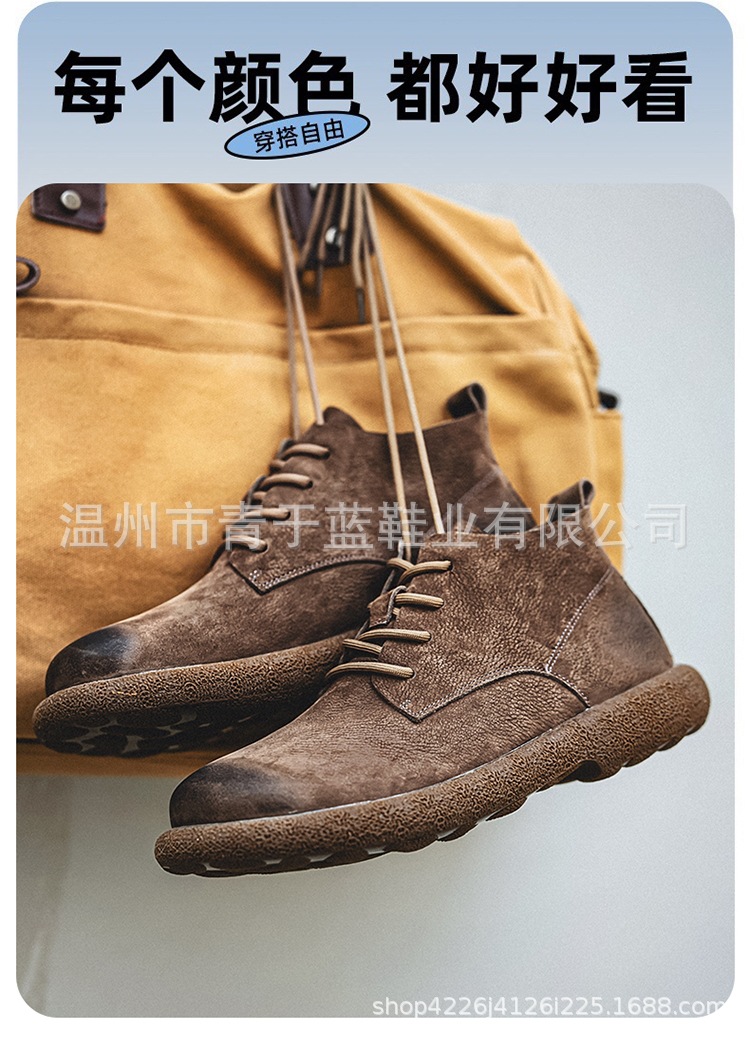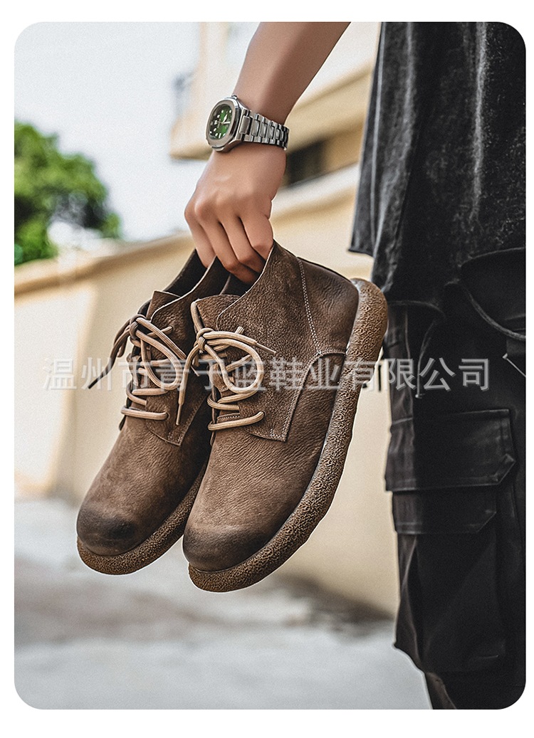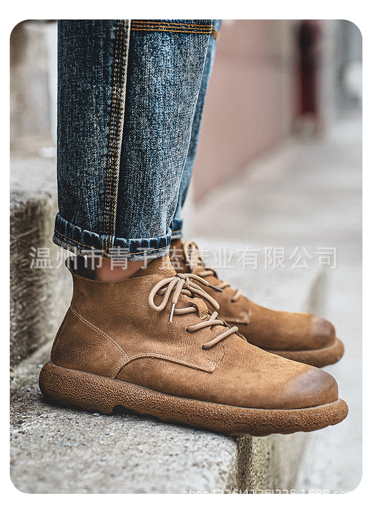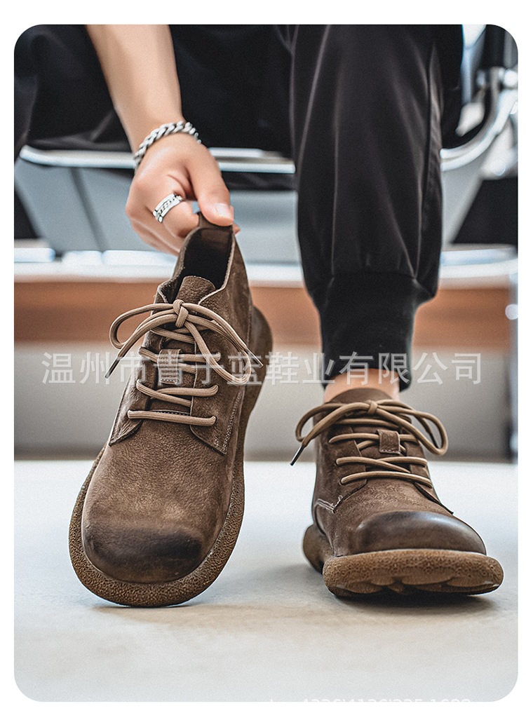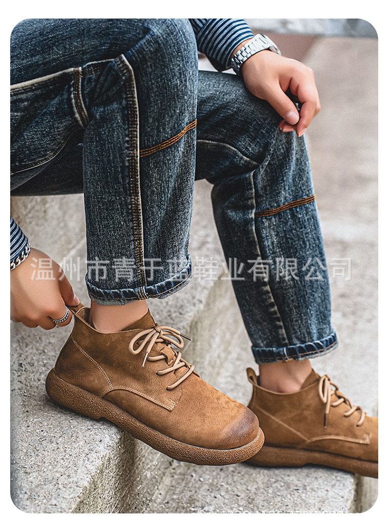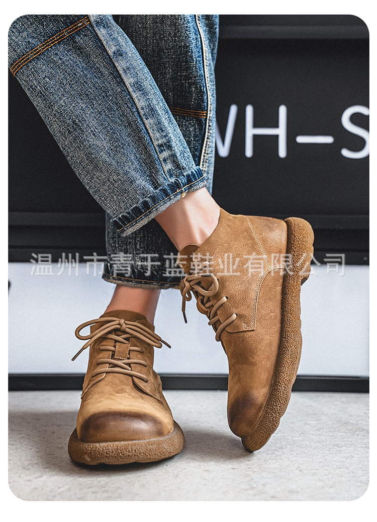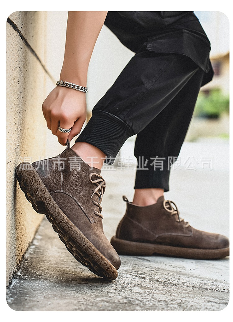 남성 신발 캐주얼 신발 봄과 가을 새로운 복고풍 통기성 남성 하이 탑 캐주얼 가죽 신발 다목적 부드러운 가죽 부드러운 밑창 신발스토어 가기