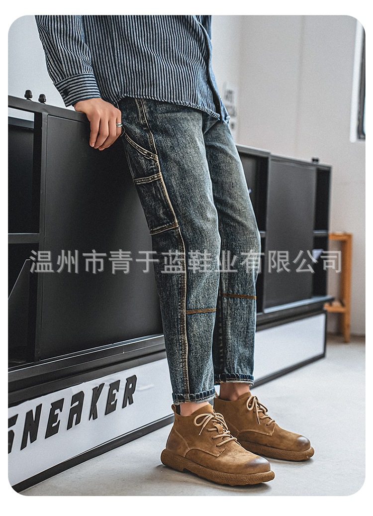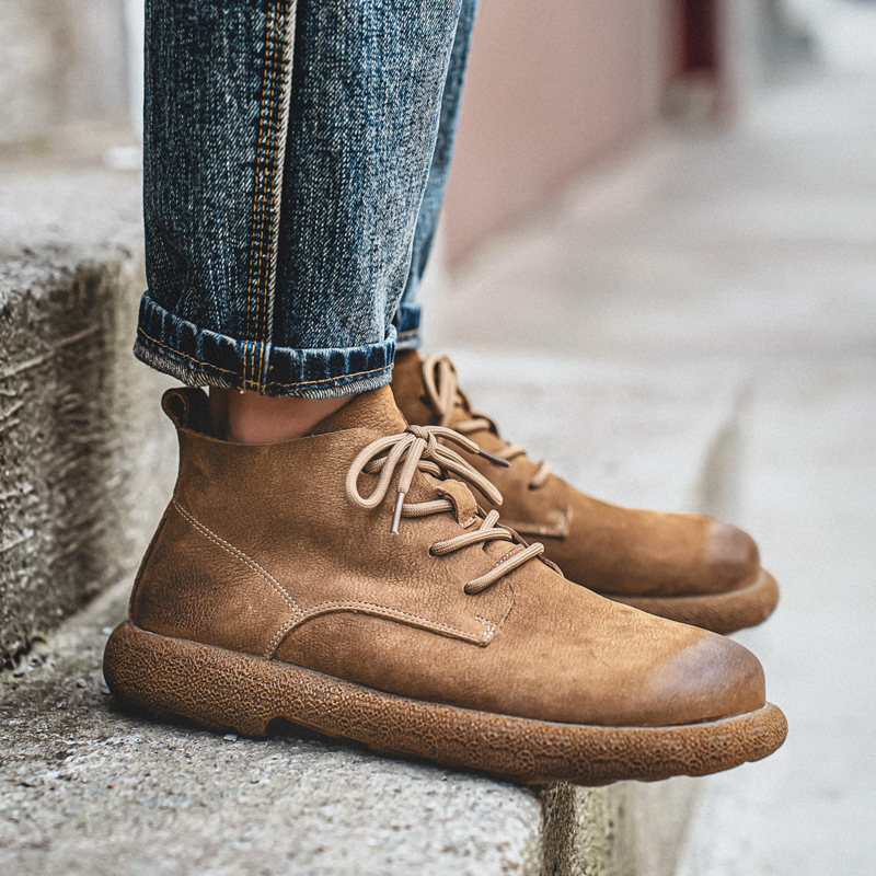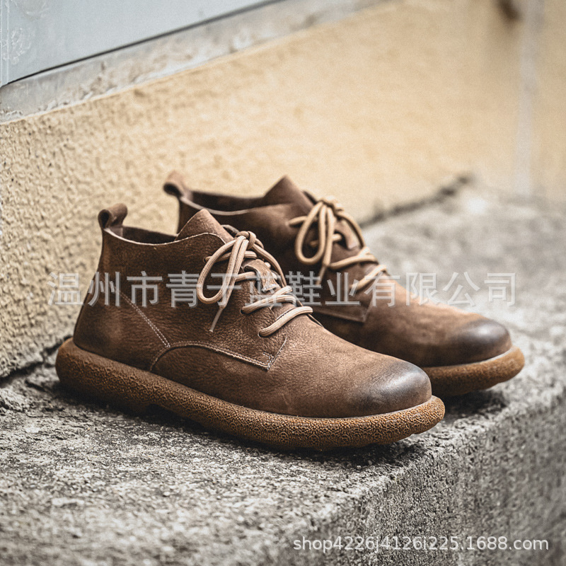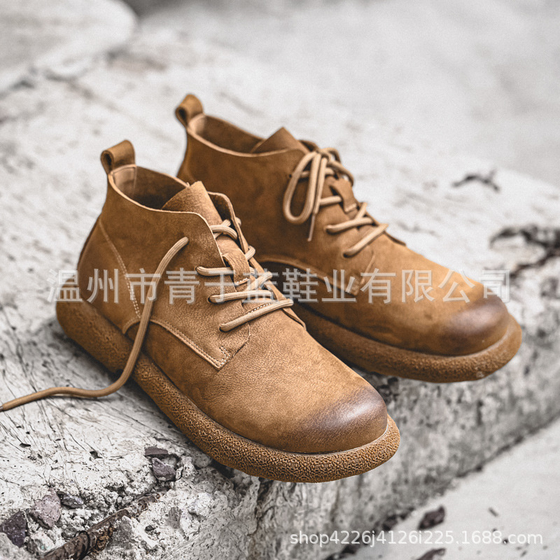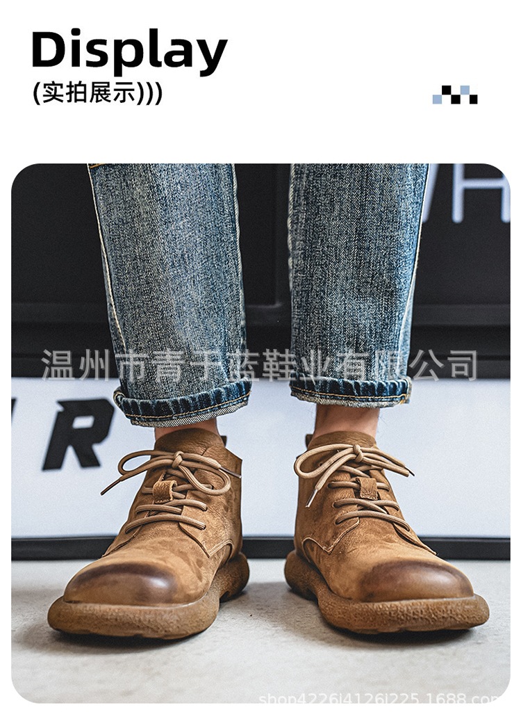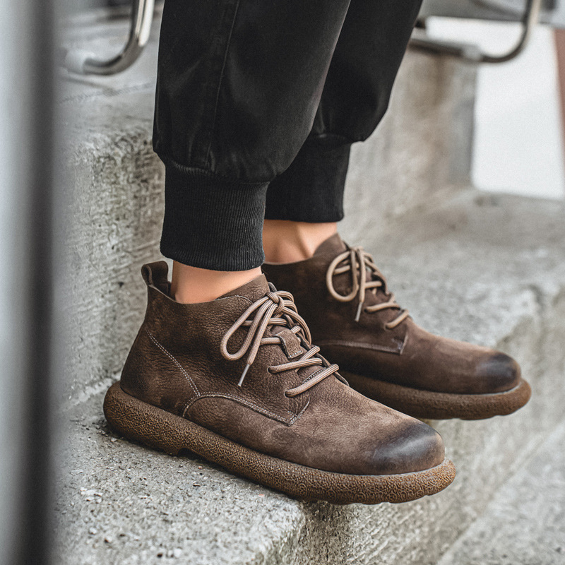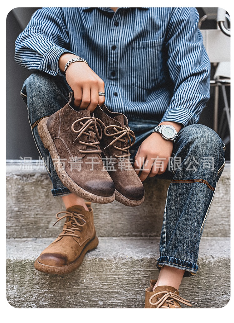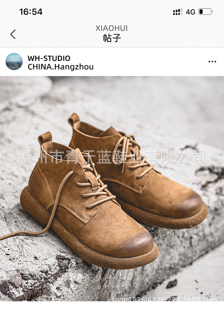 남성 신발 캐주얼 신발 봄과 가을 새로운 복고풍 통기성 남성 하이 탑 캐주얼 가죽 신발 다목적 부드러운 가죽 부드러운 밑창 신발스토어 가기