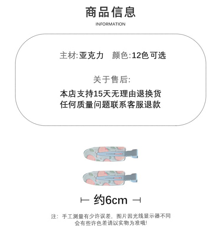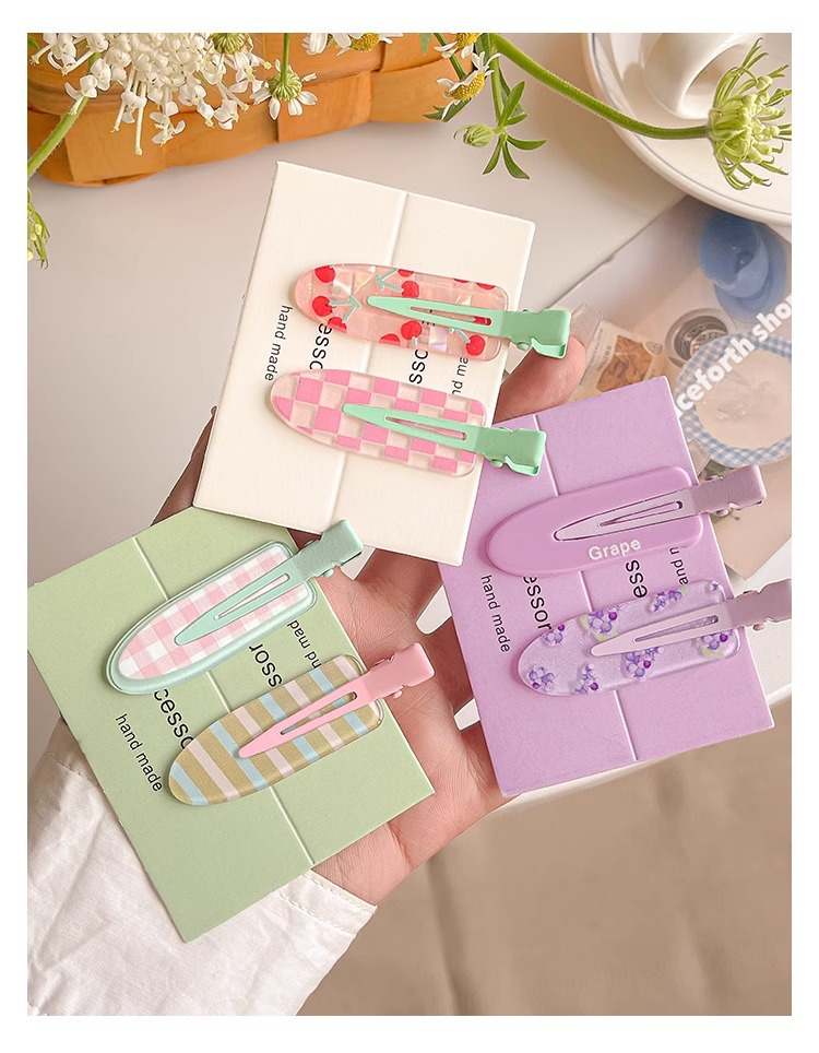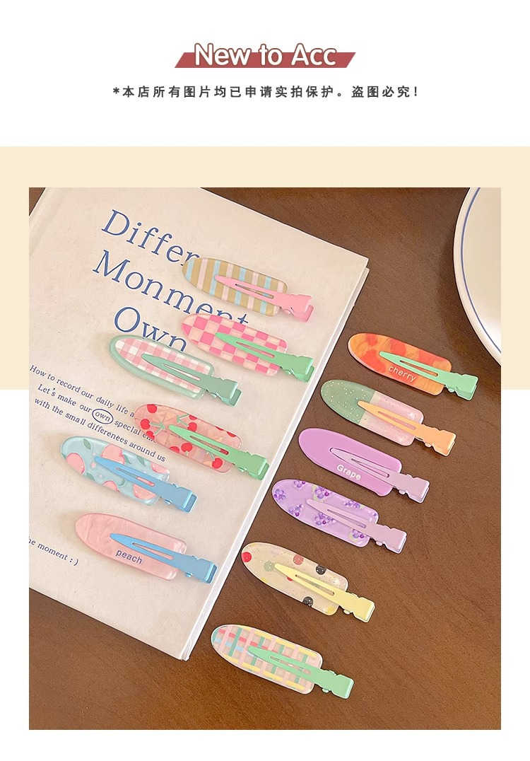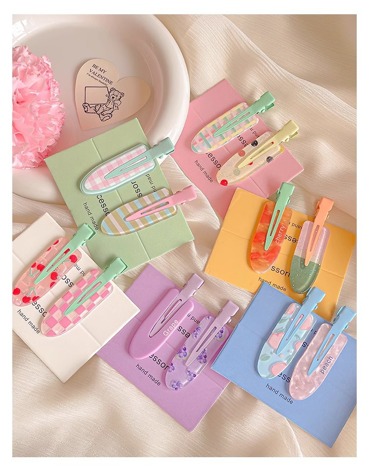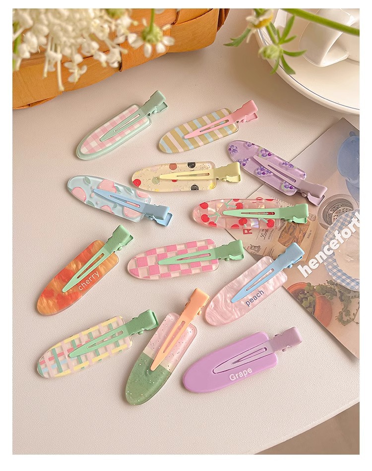 달콤하고 귀여운 주스 무봉제 머리핀 여성용 글리터 앞머리 클립 포도 메이크업 클립 머리핀 원라인 클립 머리 장식 헤어 액세서리스토어 가기