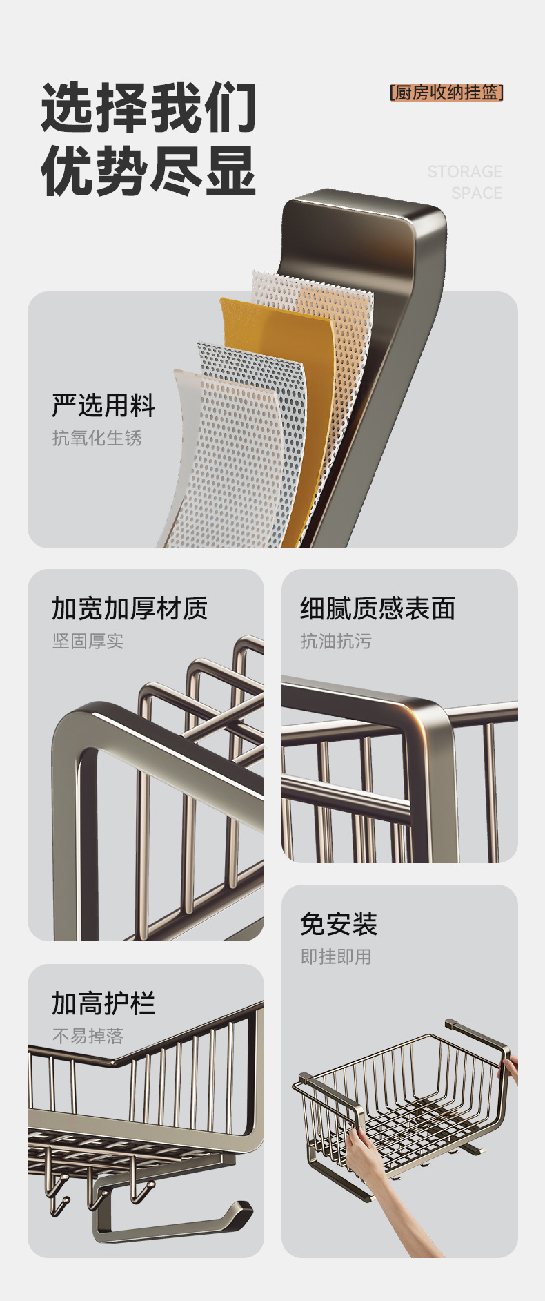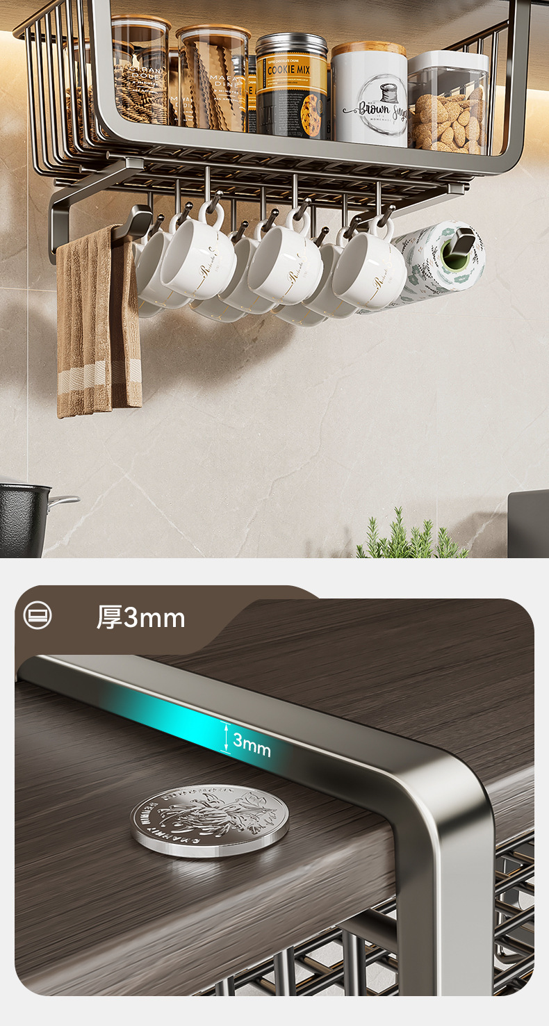주방 수납 선반, 걸이형 계층형 걸이 바구니, 펀치 없는 캐비닛, 발코니 캐비닛, 벽 캐비닛 아래 걸이 바구니 걸이