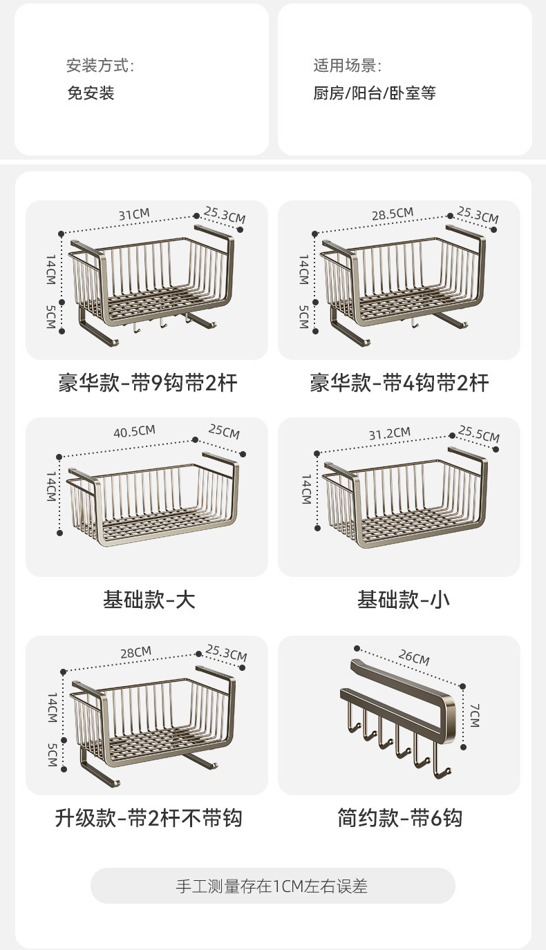 주방 수납 선반, 걸이형 계층형 걸이 바구니, 펀치 없는 캐비닛, 발코니 캐비닛, 벽 캐비닛 아래 걸이 바구니 걸이스토어 가기