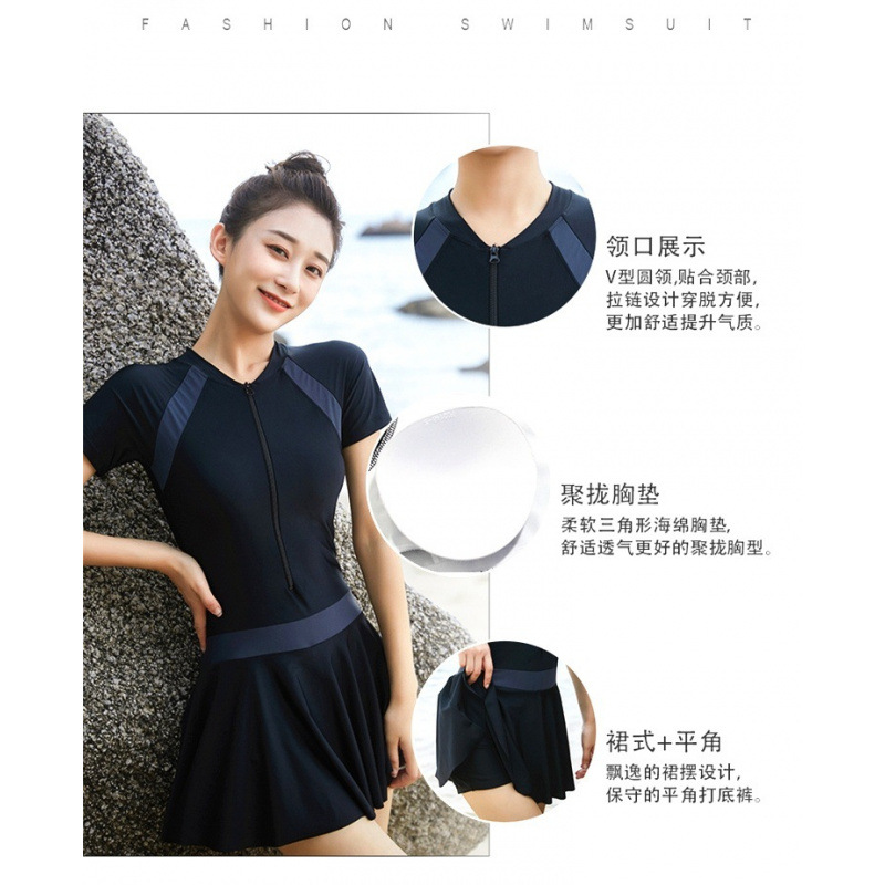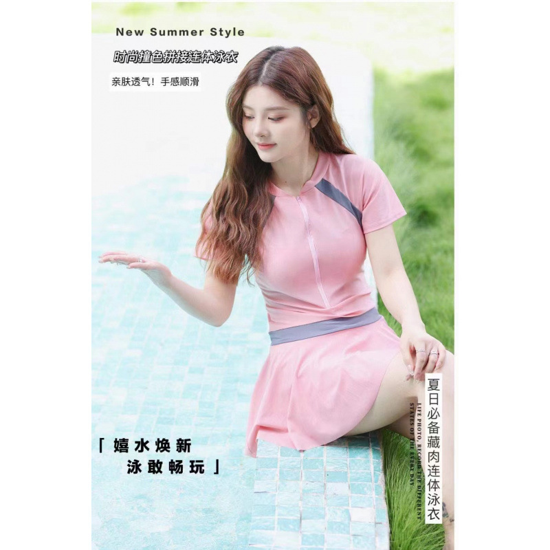 여성용 스플라이스 배색 원피스 수영복 2025 인터넷 연예인 핫 스타일 스커트 스타일 보수적 학생 스타일 배 커버 슬리밍 자외선 차단 수영복