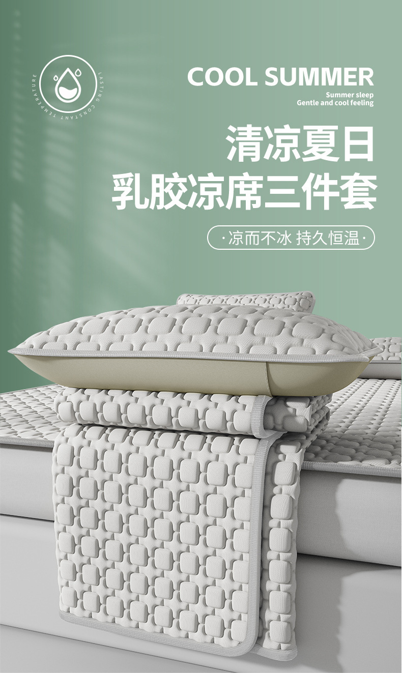 두꺼운 12MM 천연 라텍스 매트 3 조각 세트 클래스 에어컨 매트 여름 기계 세탁기 아이스 실크 소프트 매트 3