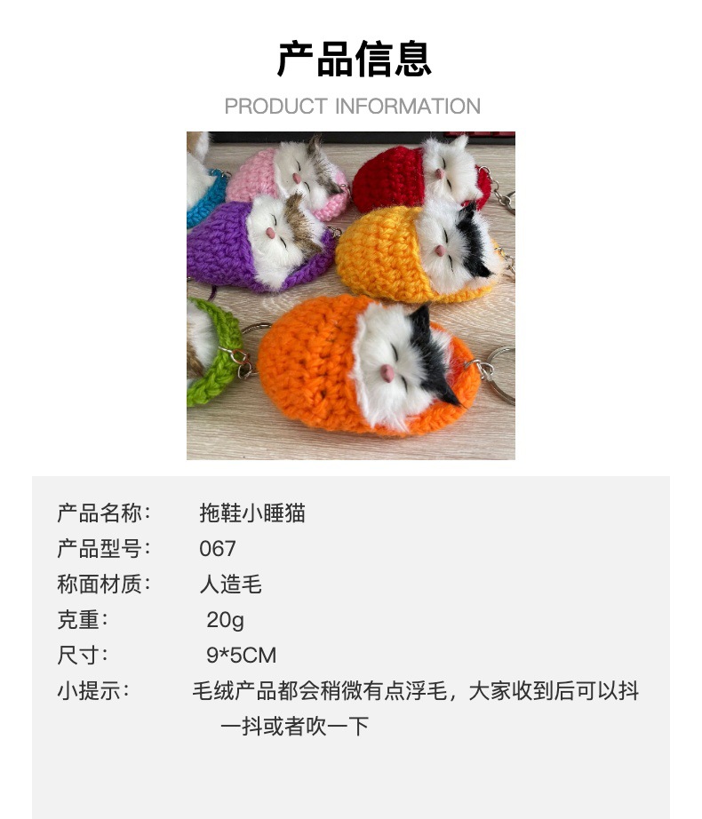 귀여운 잠자는 고양이 장식품 열쇠고리 공장 플러시 가방 펜던트 고양이 땋은 5월 액세서리 시뮬레이션