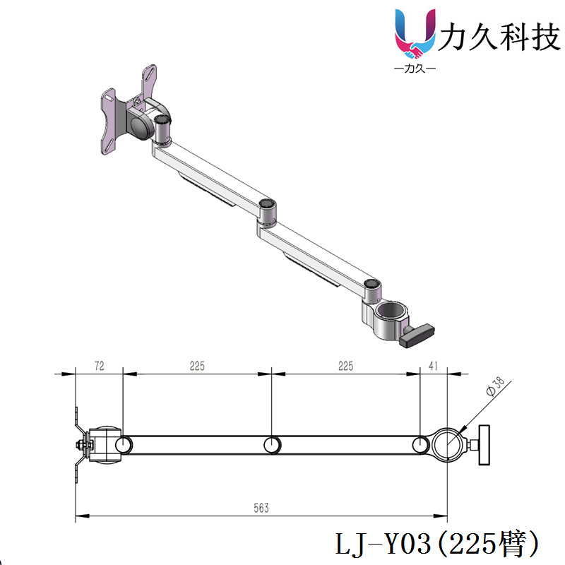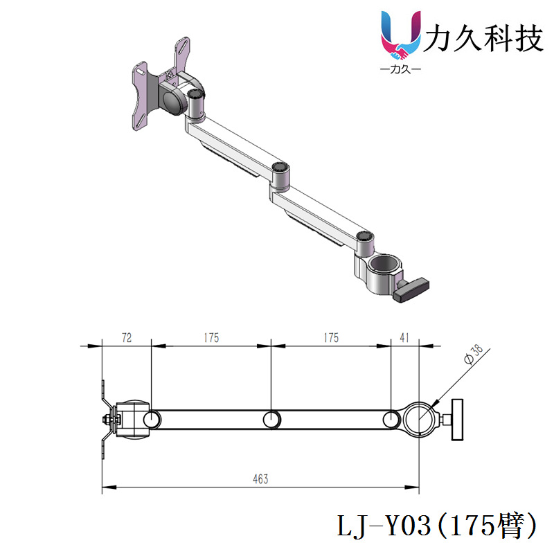 • LJ-38 폴 700 벽걸이형 수평 지지대