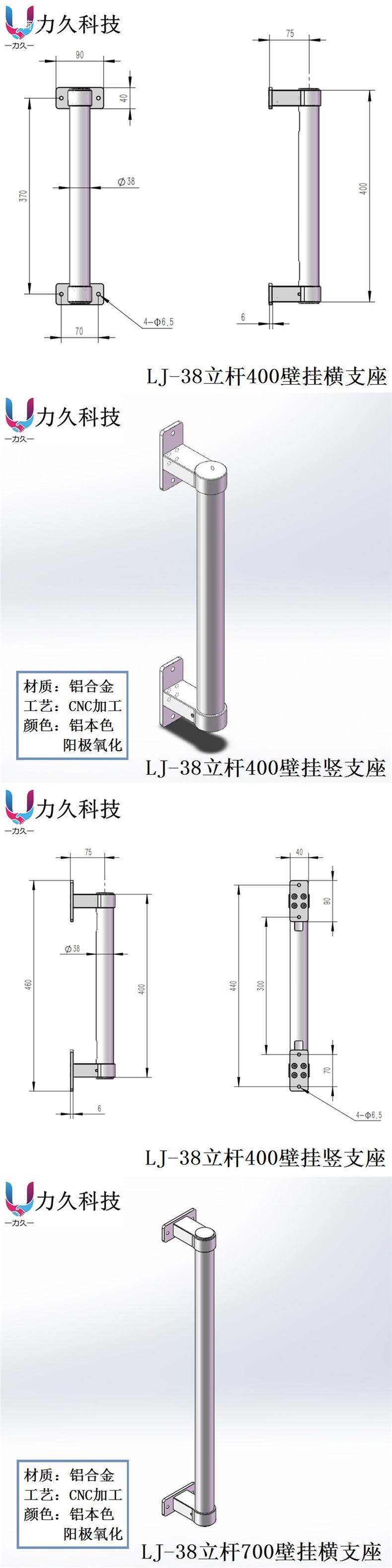 • LJ-38 폴 400 벽걸이 수직 지지대