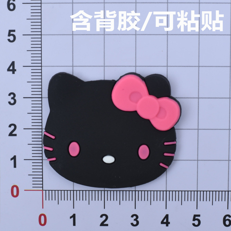 • 연질 고무: 검정 테두리 평면 나비넥타이 고양이 (뒷면 접착제 미포함)