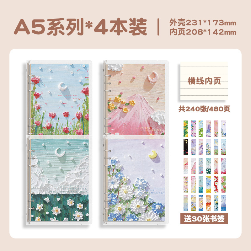 손으로 그린 유화 루스리프 노트, 탈착식 쉘 노트, 5일 다이어리, 고급스러운 부드러운 가죽, 심플한 스타일스토어 가기