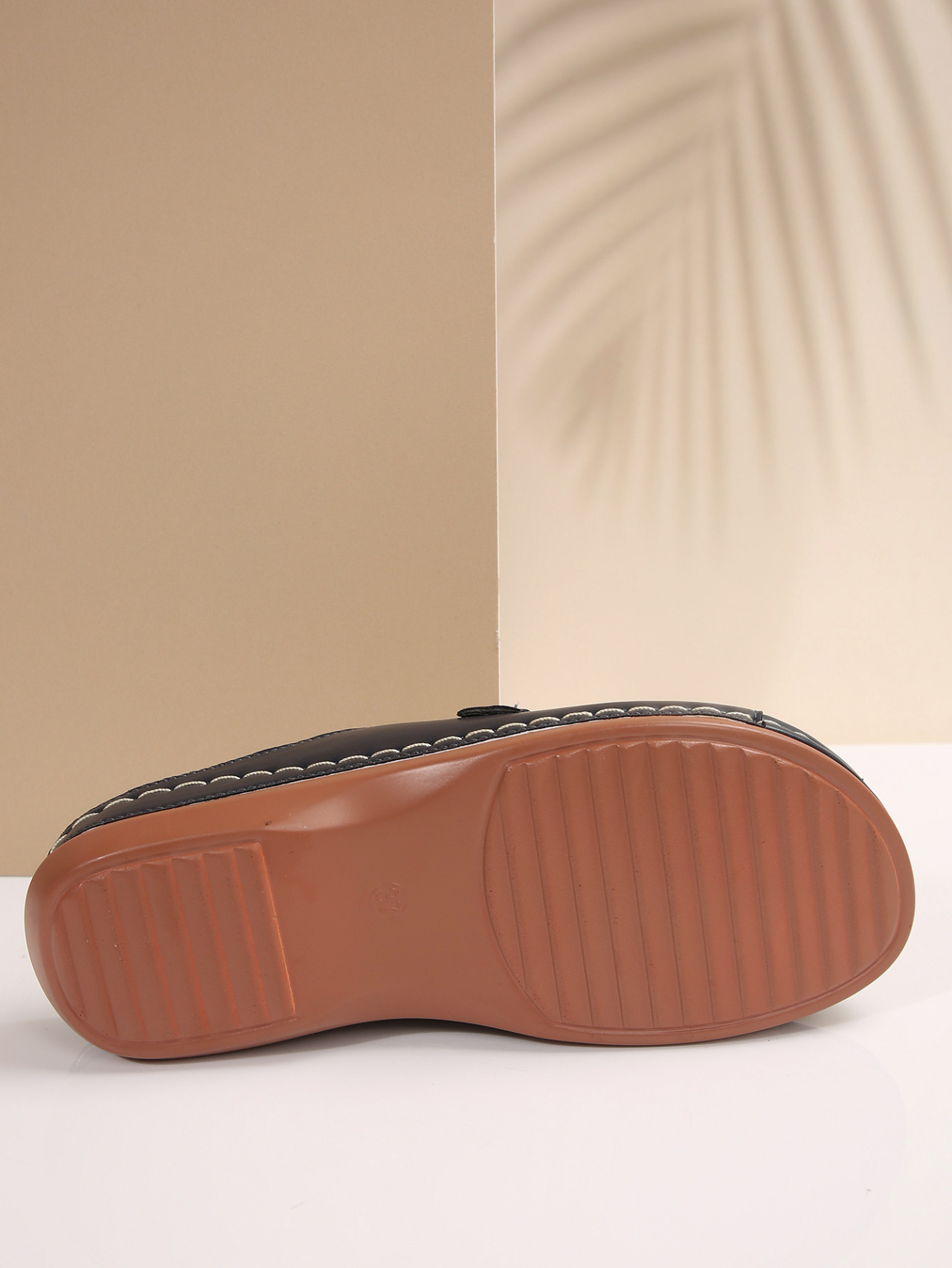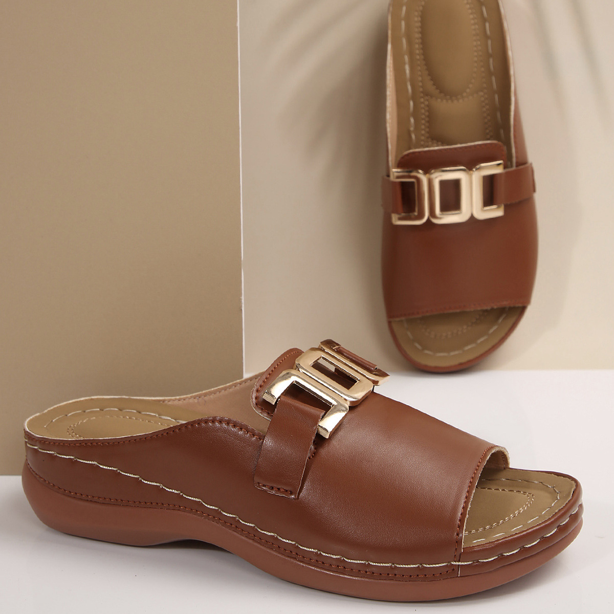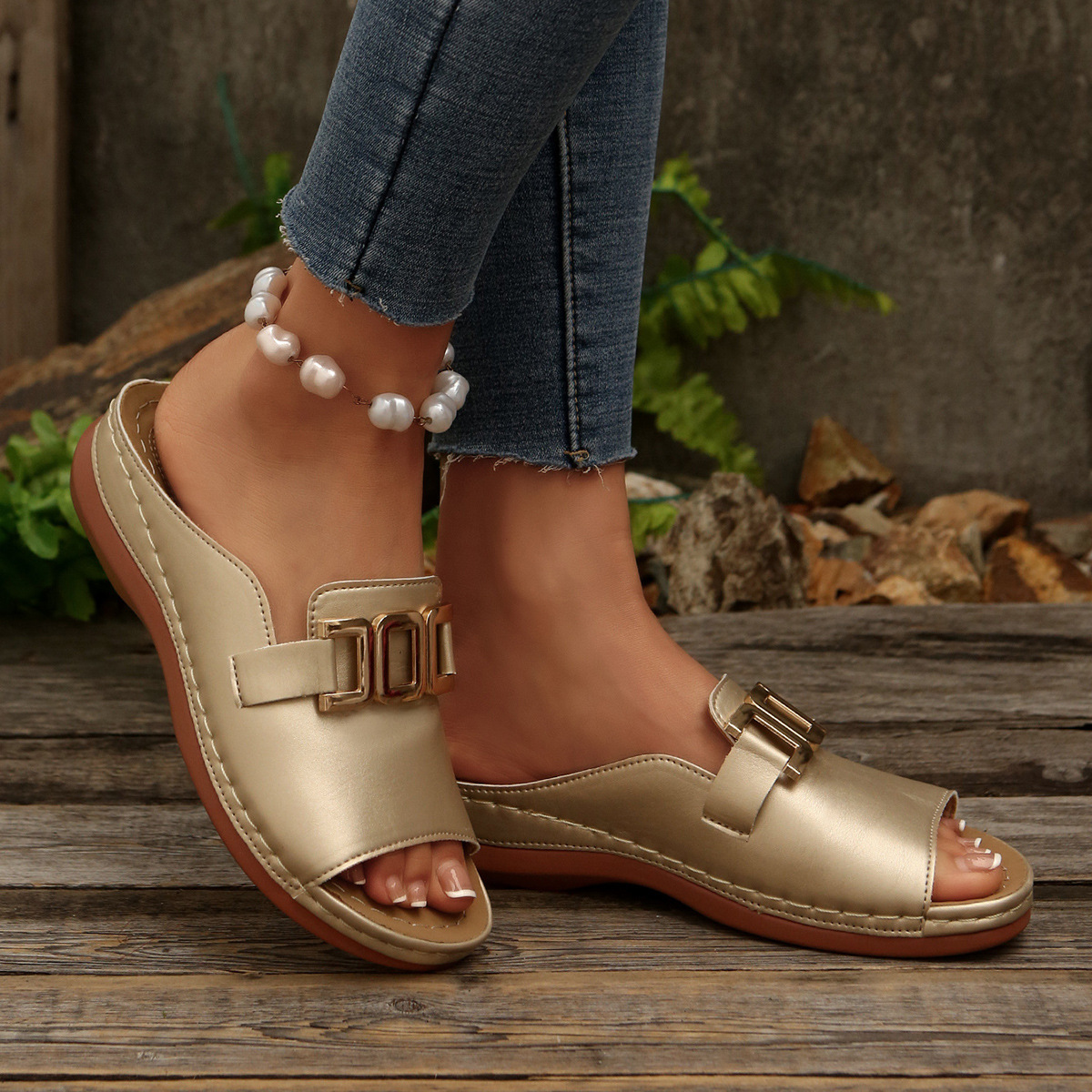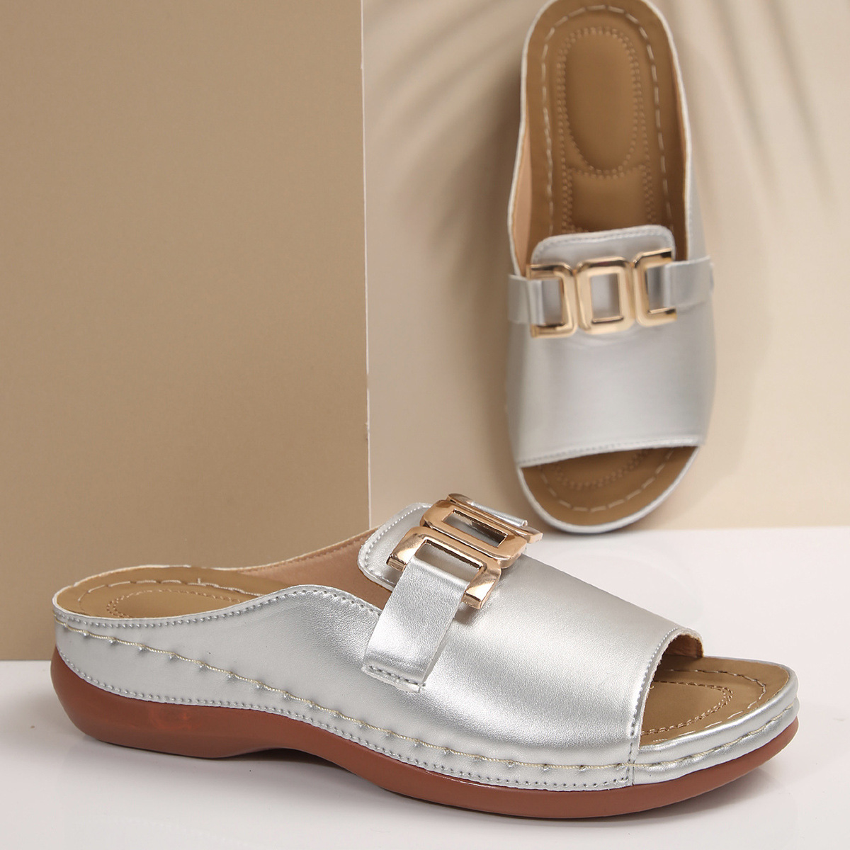 여성을위한 대외 무역 웨지 두꺼운 밑창 슬리퍼 2025 새로운 국경 간 대형 캐주얼 패션 간단한 금속 버클 물고기 입 샌들스토어 가기