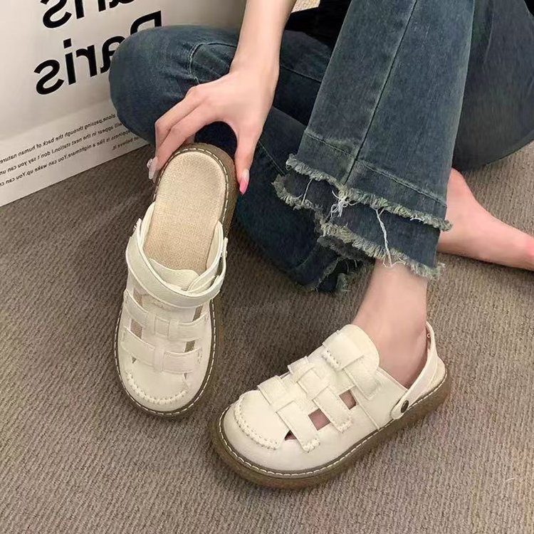 여성용 바오터우 샌들 2025 여름 신작 두꺼운 밑창 중공 반 슬리퍼 부드러운 밑창 다용도 캐주얼하고 편안한 신발스토어 가기