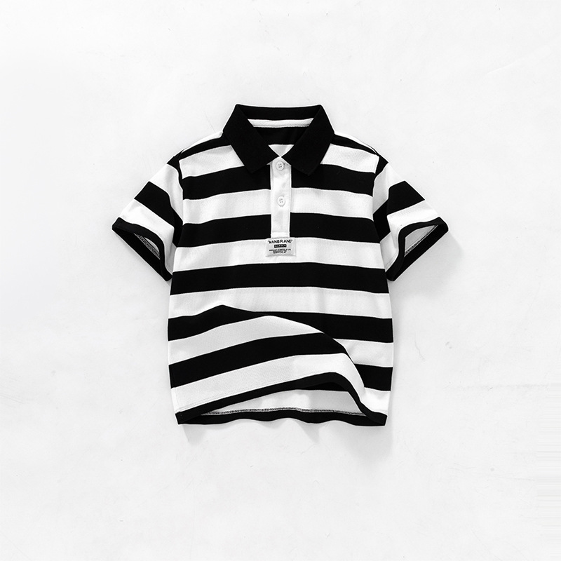 소년 반팔 폴로 셔츠 티셔츠 2025 새로운 여름 아기 유행 어린이 흑백 줄무늬 옷깃 탑 유행스토어 가기