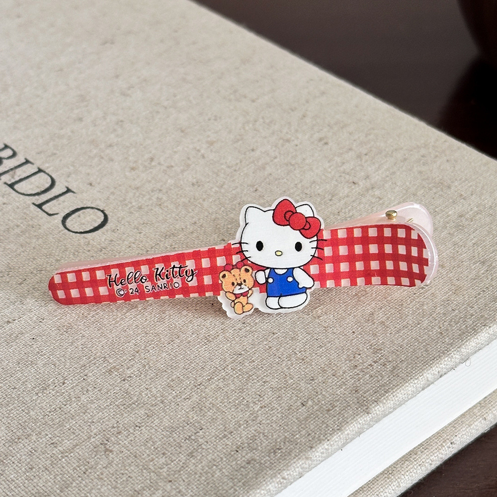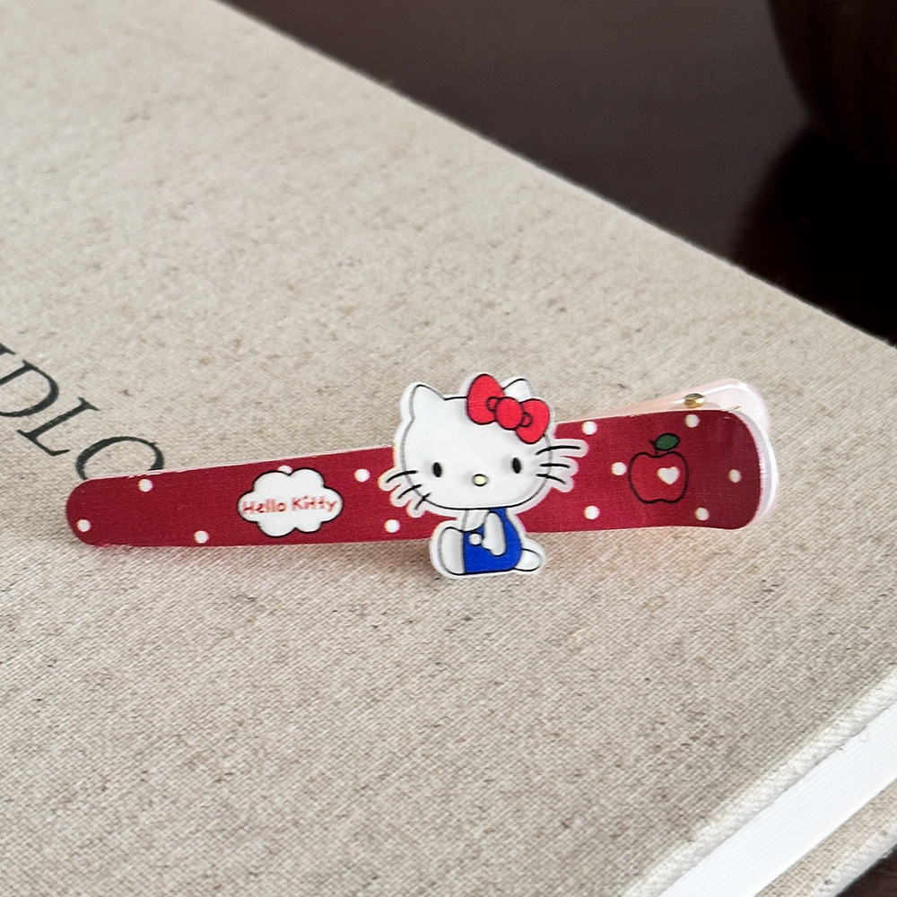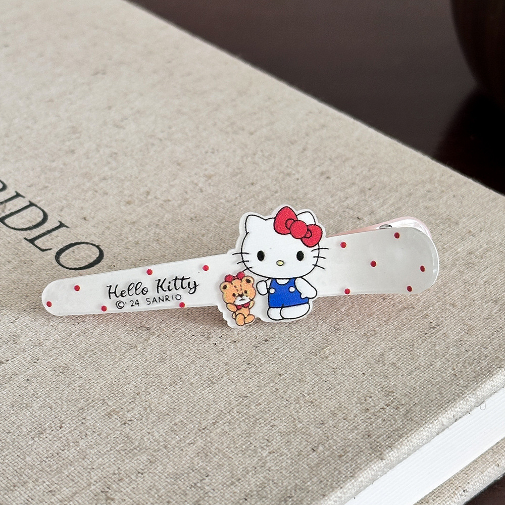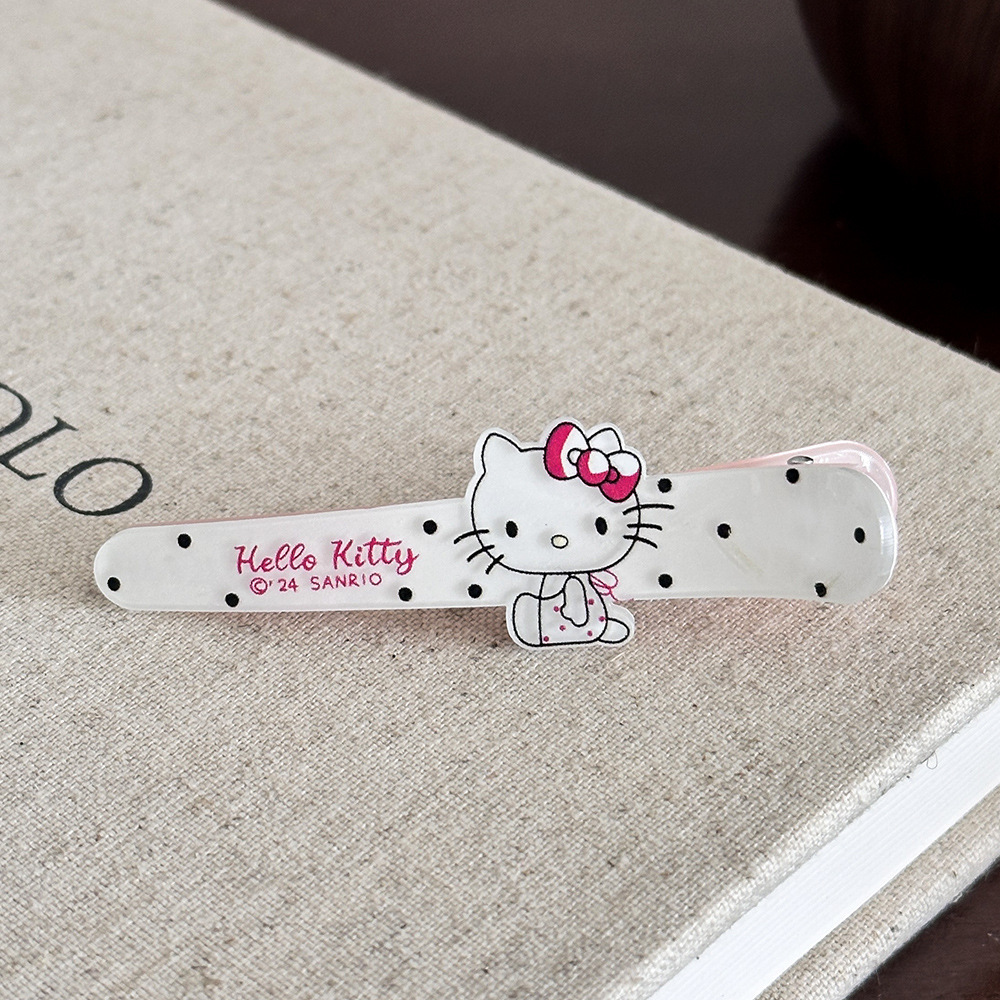 산리오 아크릴 웨이브 포인트 고양이 긴 오리 부리 머리핀 귀여운 달콤한 소녀 심장 앞머리 화장품 클립 머리 장식