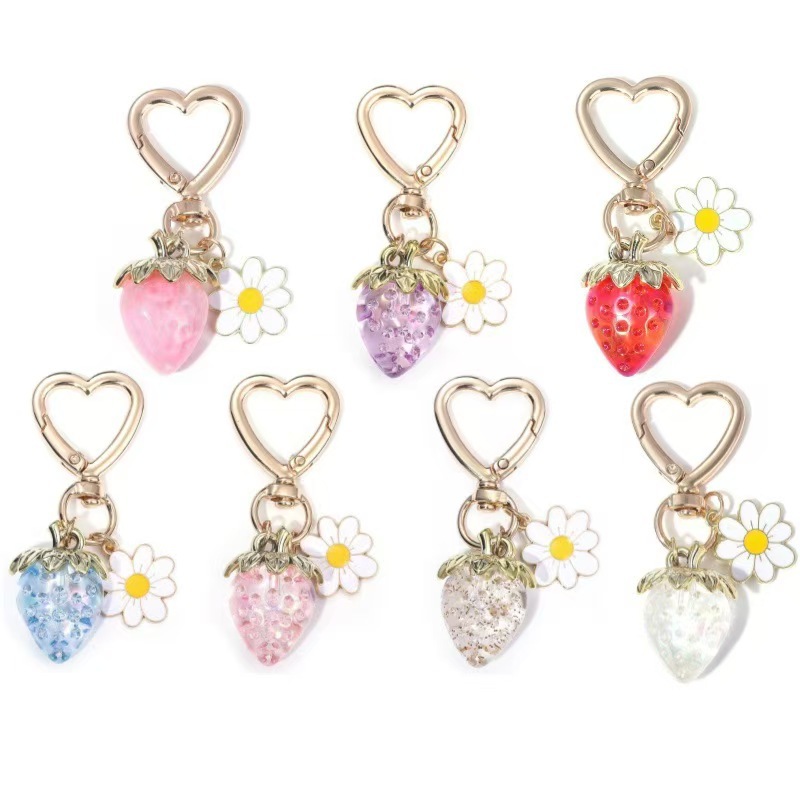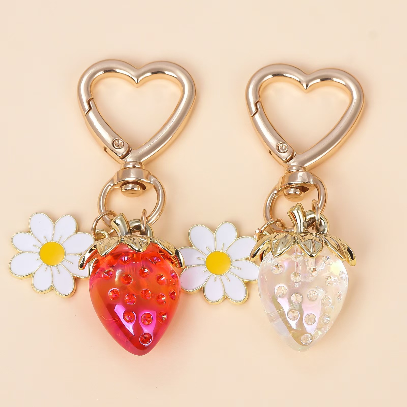 귀여운 성격 소녀 하트 달콤한 딸기 하트 모양의 키 체인 인터넷 축하 여성의 새로운 창조적 인 가방 키 보석 펜던트