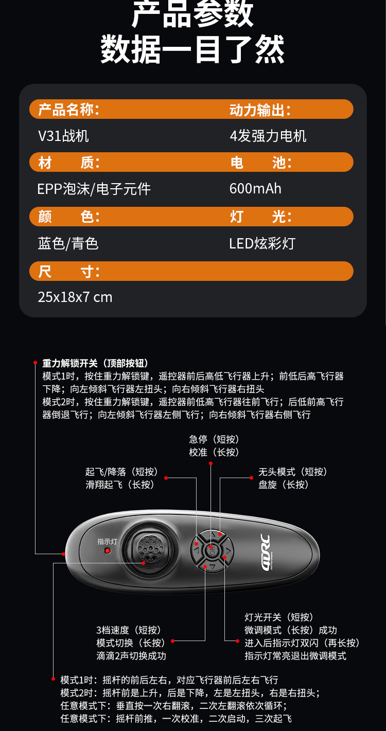 重力感应 特技翻滚 气压定高 炫酷灯光