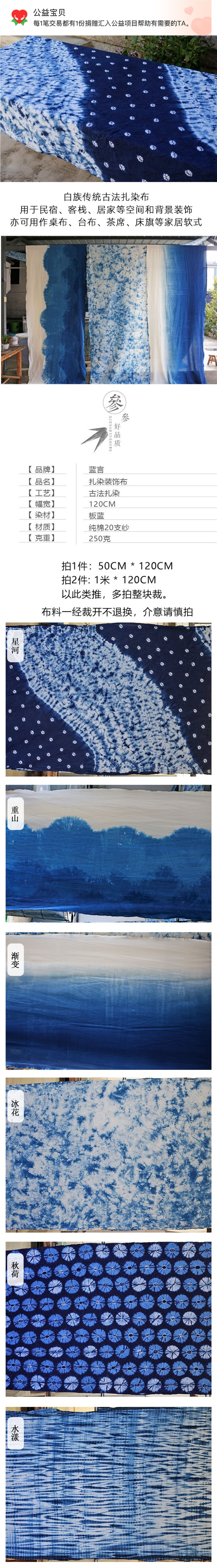Dali 수제 타이 염색 직물 순수 코튼 B&B 테이블 러너 식물 천연 염료 직물 의류 배경 장식 직물스토어 가기