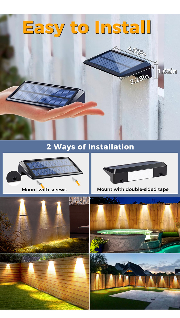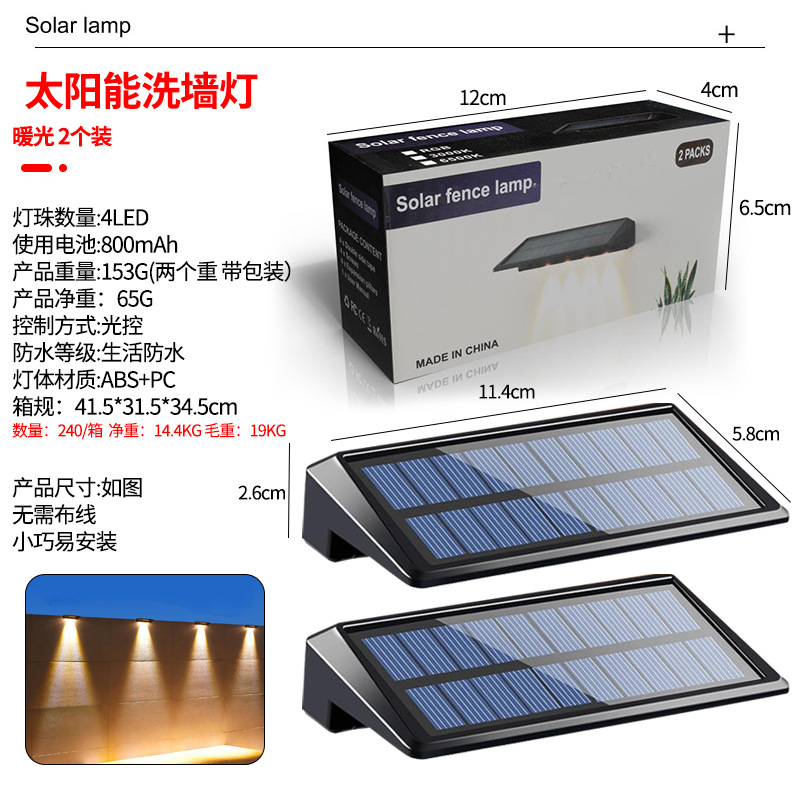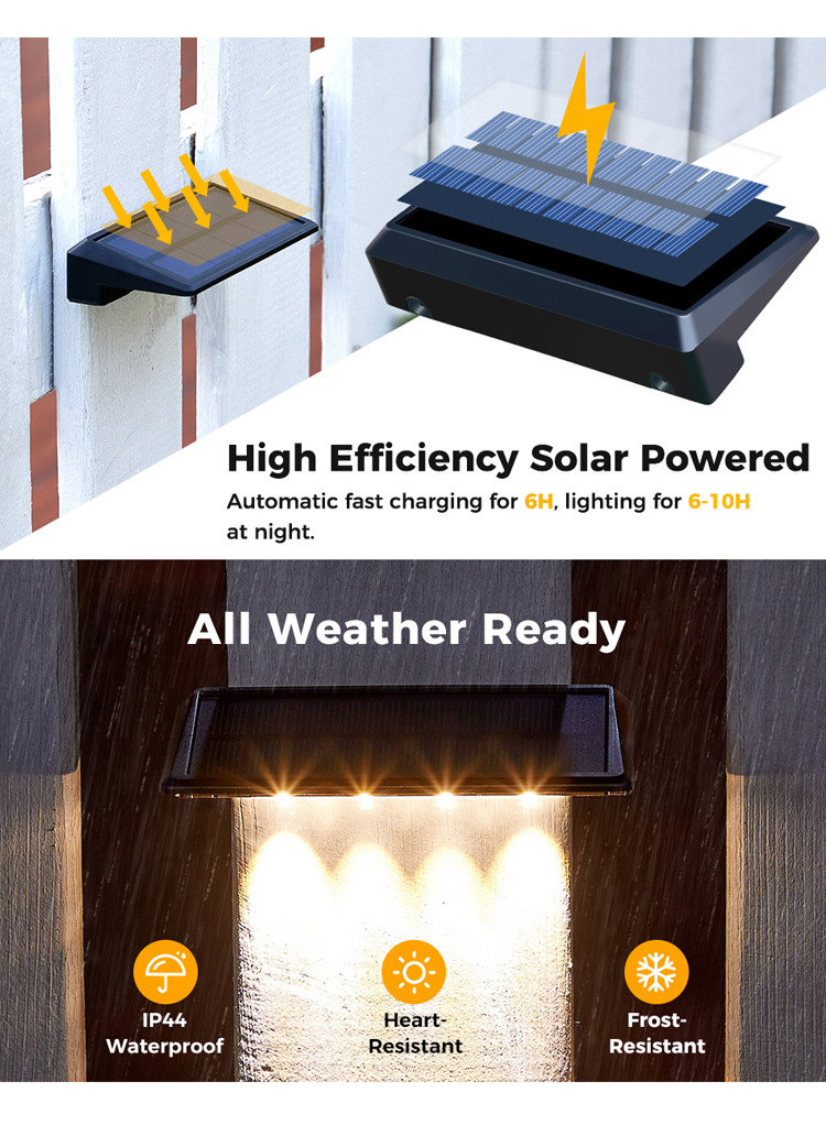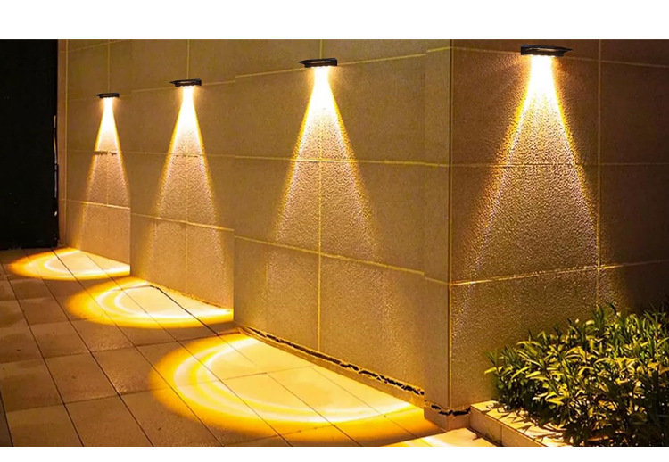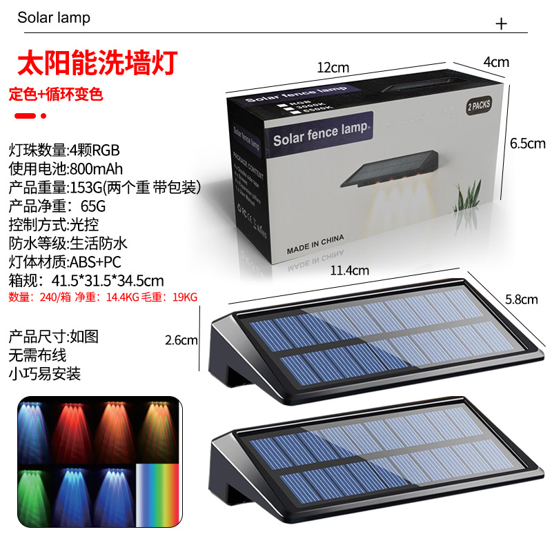 국경 간 야외 조명 하이라이트 LED 안뜰 분위기 벽 세척 조명 울타리 갑판 다채로운 고정 색상 태양 울타리 조명