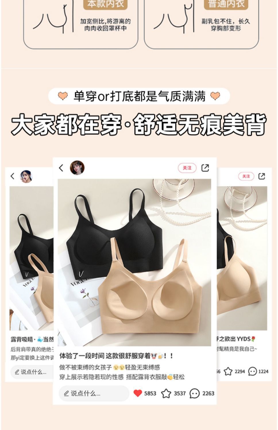 [섹시한 무봉제 아름다운 등] 여름 작은 가슴 푸쉬업 빈 컵 속옷 여성용 리프팅 처짐 방지 브라 스킨 컬러스토어 가기