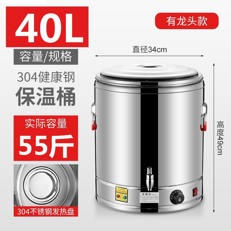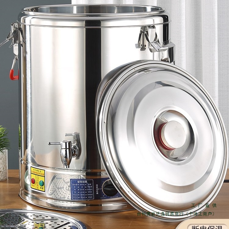 전기 난방 스테인레스 스틸 절연 버킷 상업용 차 버킷 쌀 버킷 끓는 버킷 요리 수프 버킷 더블 레이어 대용량 버킷스토어 가기
