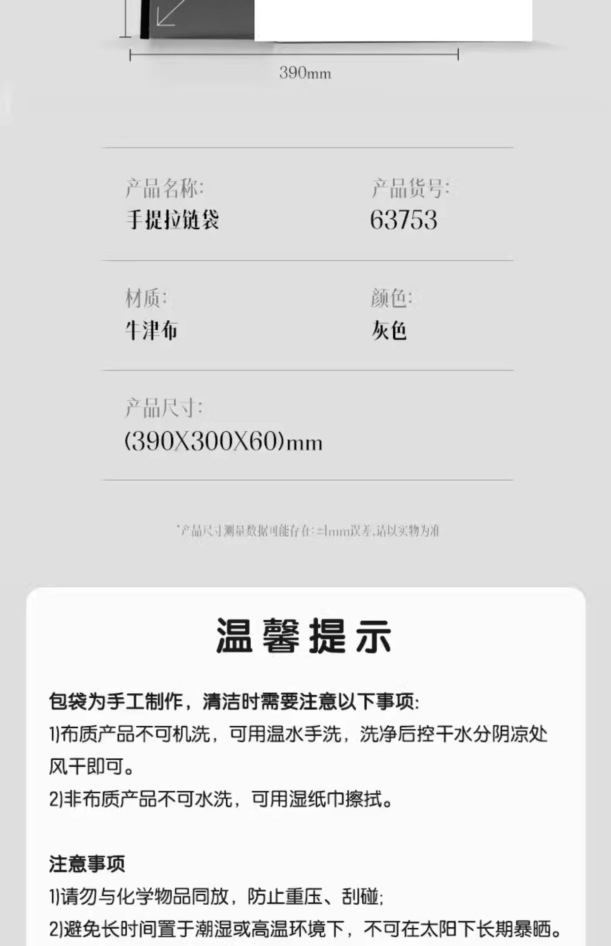 • 63753 휴대용 지퍼백 - 그레이