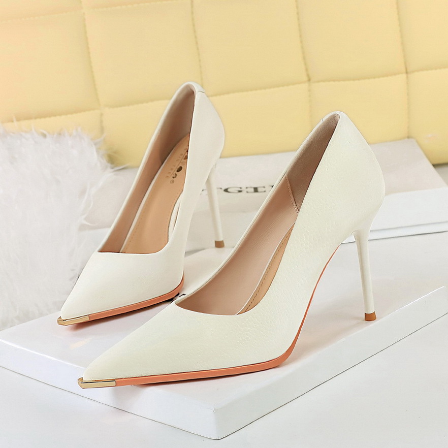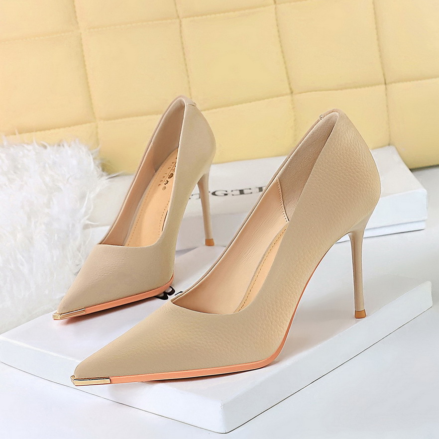 1891 년 유럽과 미국 스타일의 연회 패션 메탈 힐 신발 여성의 뾰족한 얕은 스틸레토 힐 섹시한 여성 신발 우아한 싱글 레이어 신발