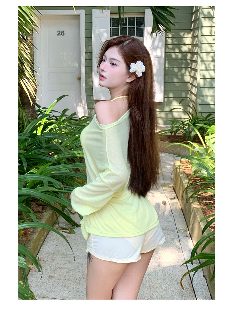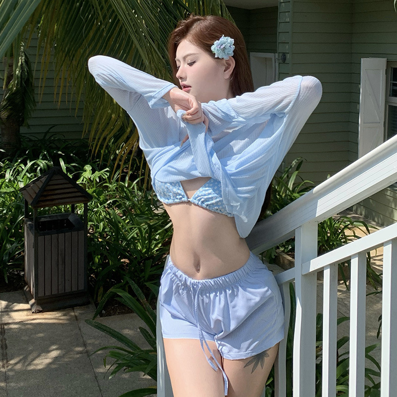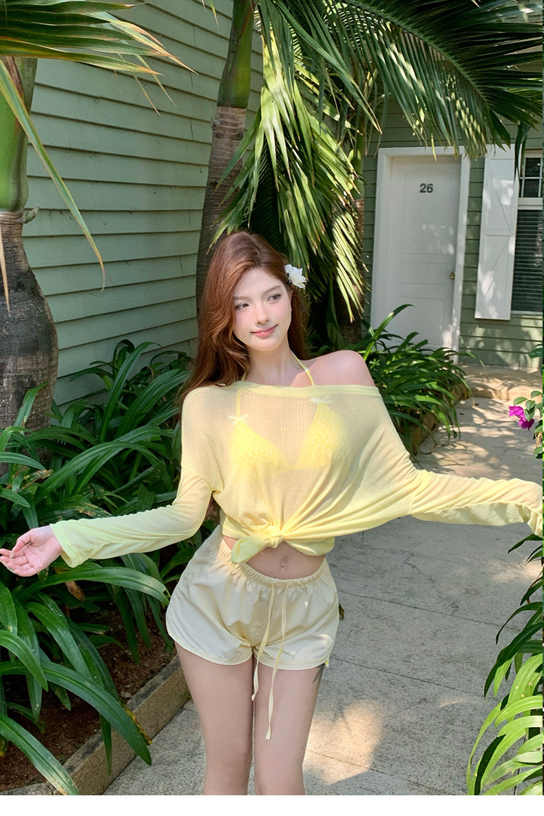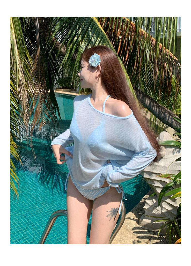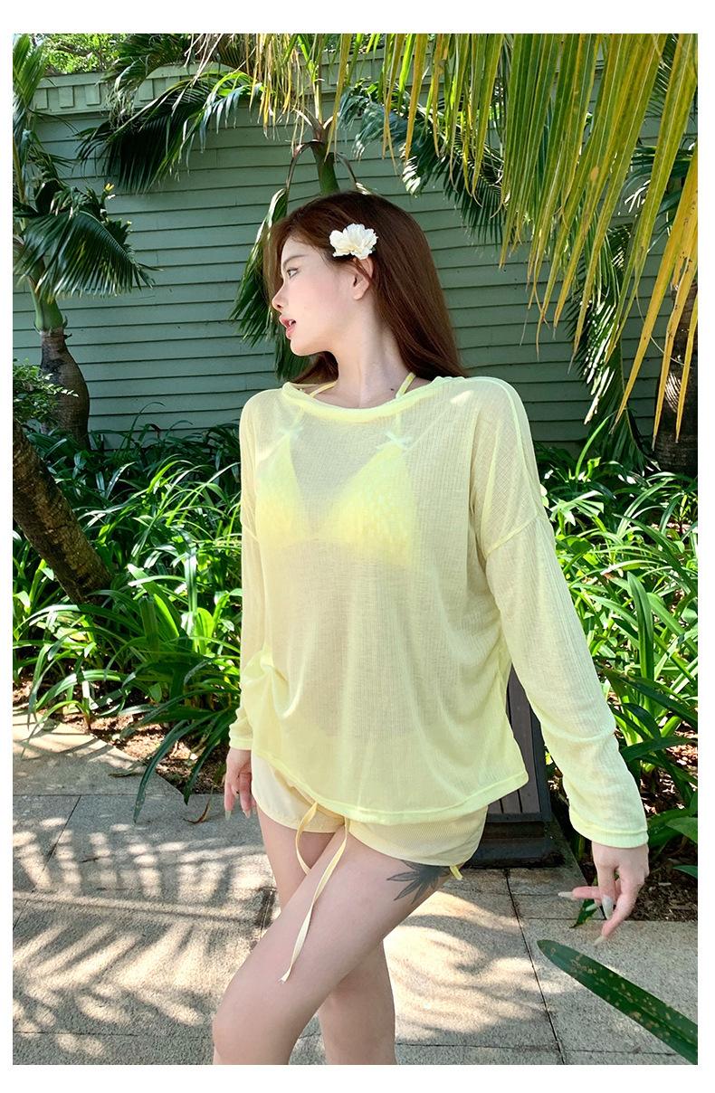 느슨한 원근감 긴 소매 풀오버 블라우스 비치 휴가 섹시 비키니 BIKINI 스플릿 수영복 여성용 온천스토어 가기