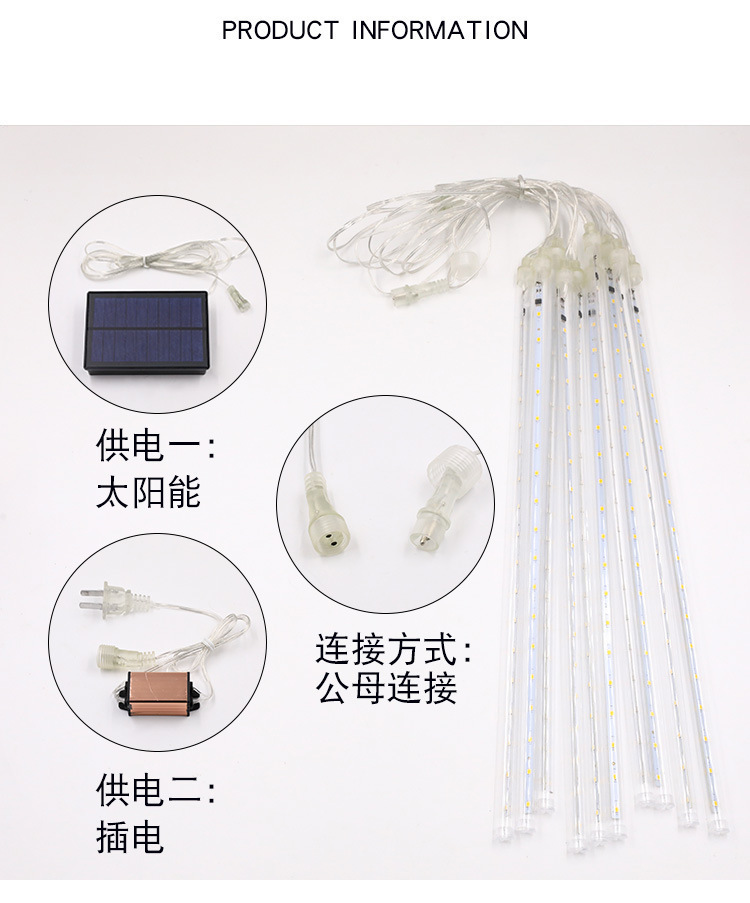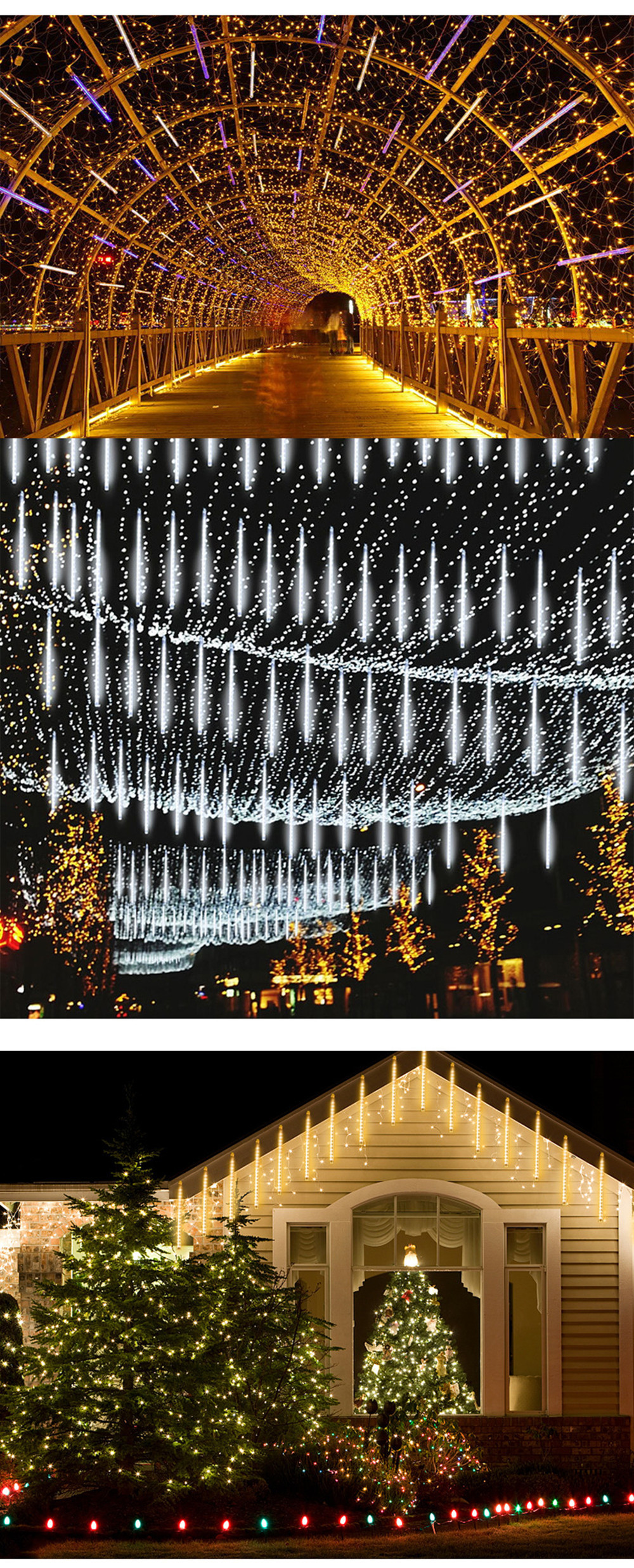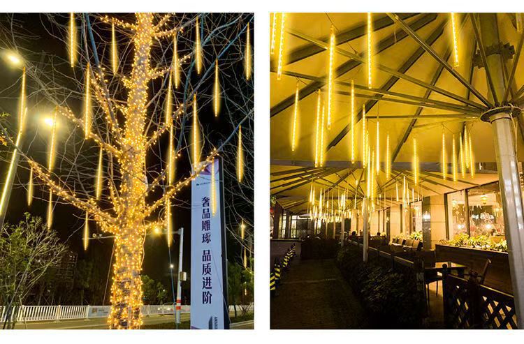 국경 간 유성 빛 문자열 LED 야외 방수 태양 빛 문자열 교수형 나무 쇼핑몰 유성우 장식 조명 도매스토어 가기