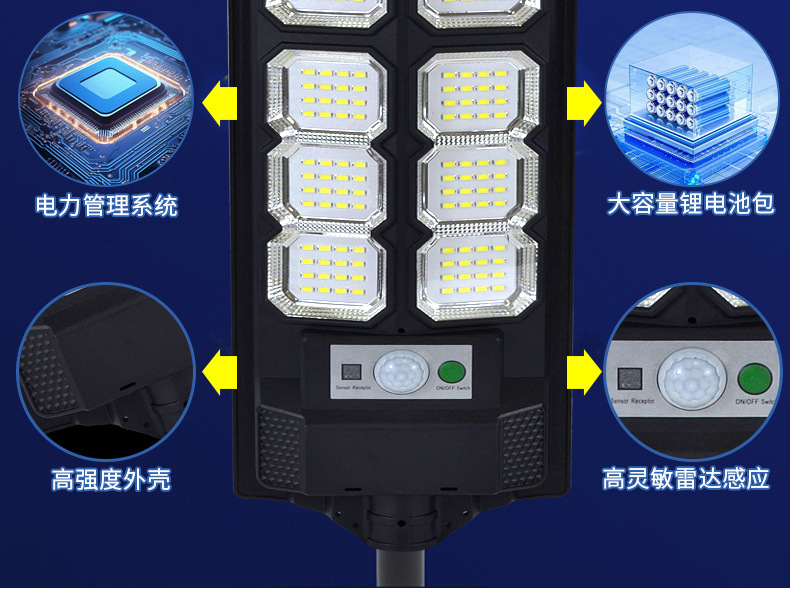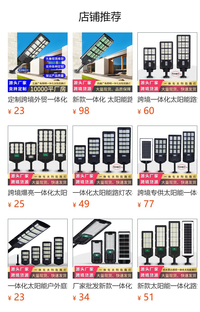 맞춤형 도매 LED 통합 가로등은 어두워지면 자동으로 밝게됩니다. 야외 인체 센서 램프 프로젝트 태양광 가로등스토어 가기