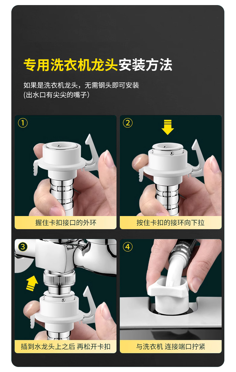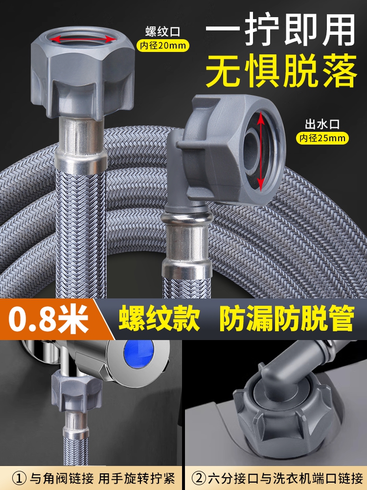 완전 자동 세탁기 물 흡입 파이프 연장 호스 연장 물 파이프 수도꼭지 배출 파이프 4점 커넥터 연결