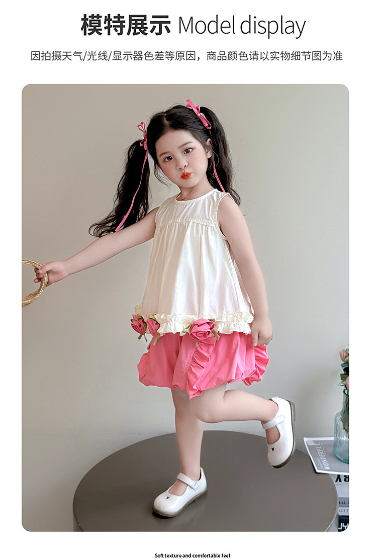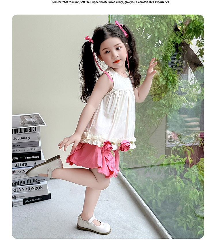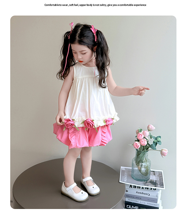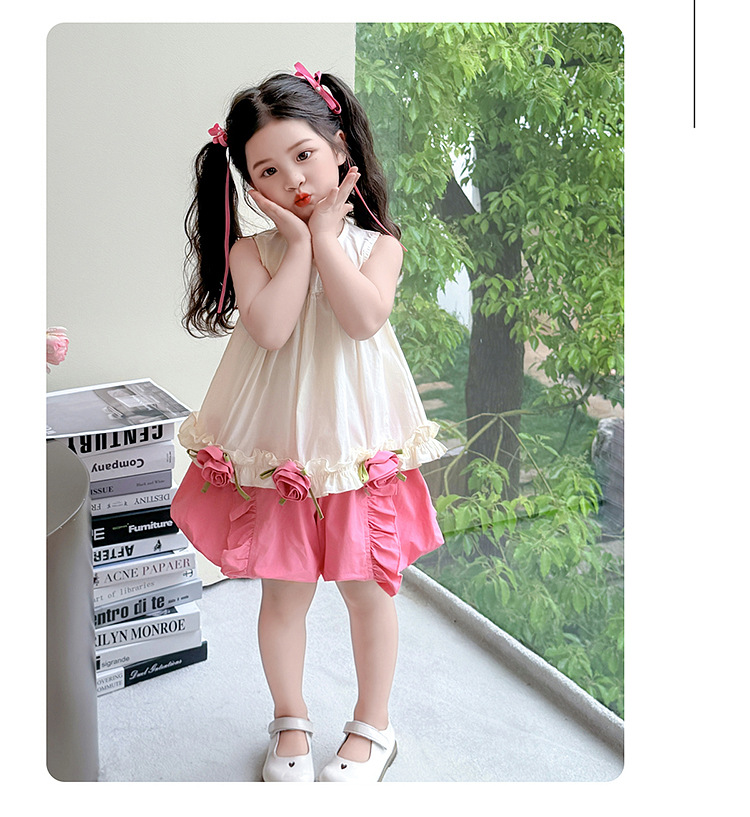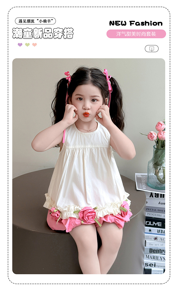 여자 3 꽃 민소매 세트 2025 여름 새 패션 소녀 세련된 투피스 세트 중소 어린이 세트스토어 가기