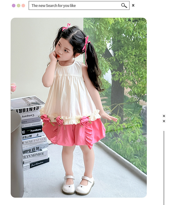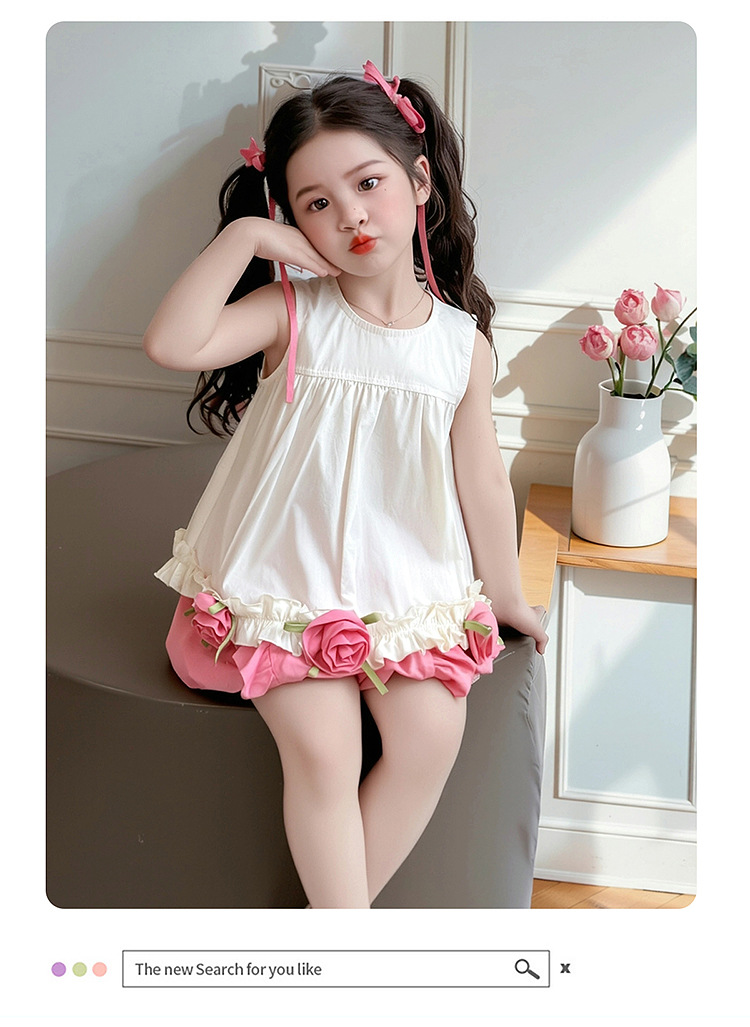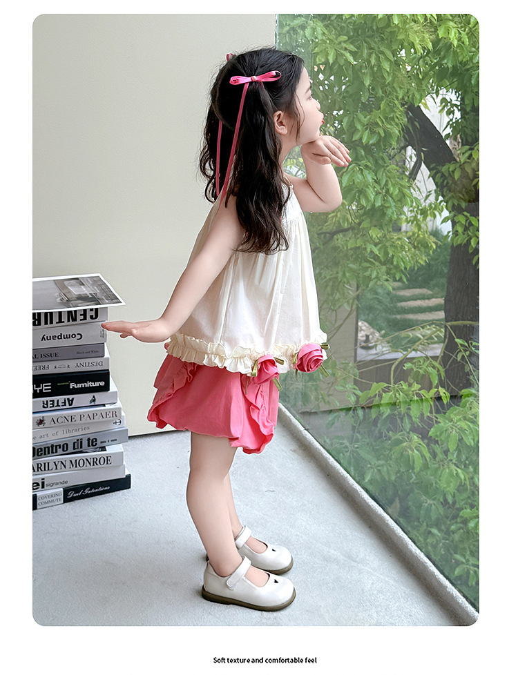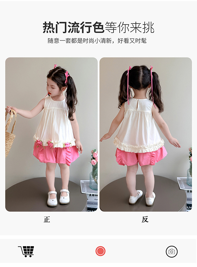 여자 3 꽃 민소매 세트 2025 여름 새 패션 소녀 세련된 투피스 세트 중소 어린이 세트스토어 가기