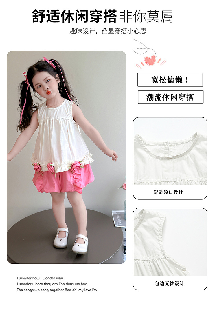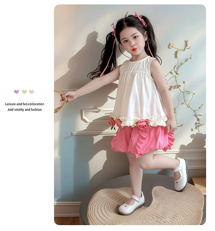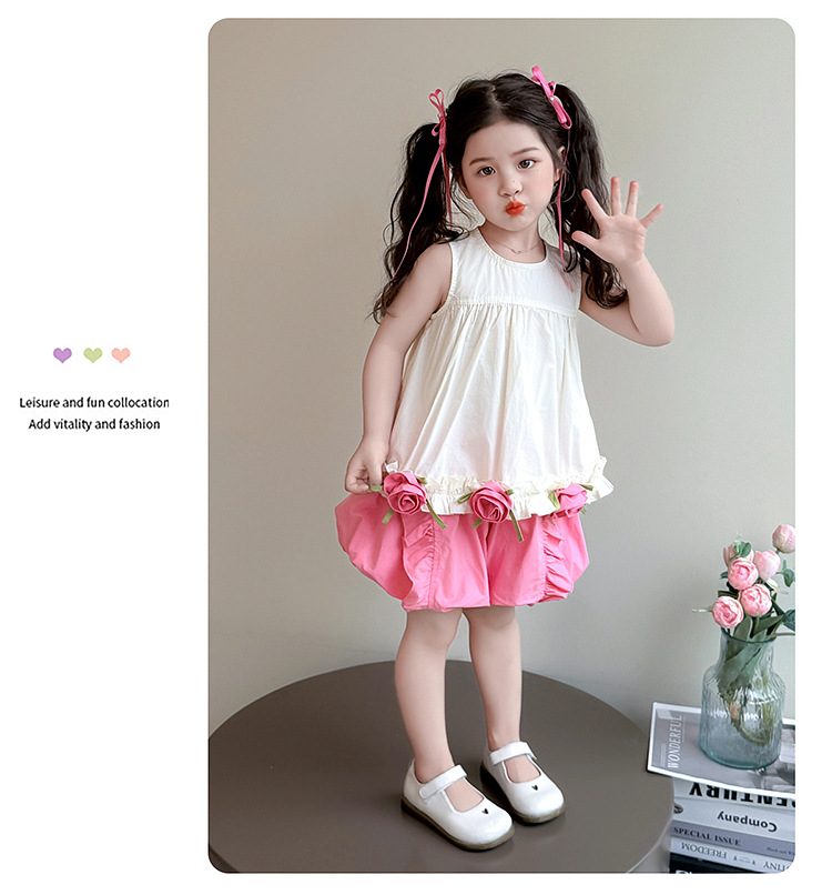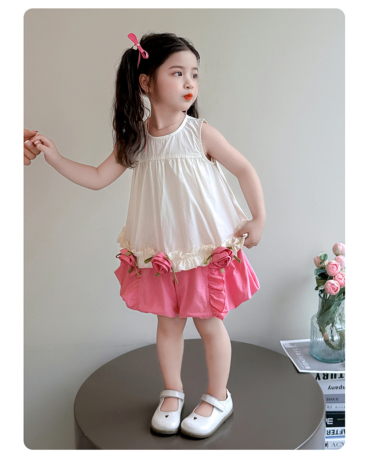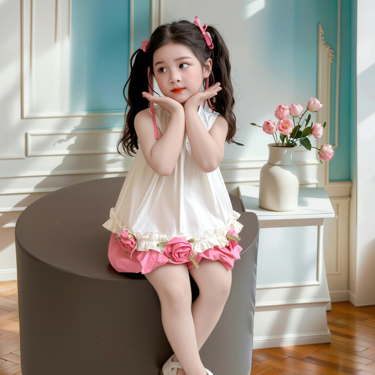 여자 3 꽃 민소매 세트 2025 여름 새 패션 소녀 세련된 투피스 세트 중소 어린이 세트