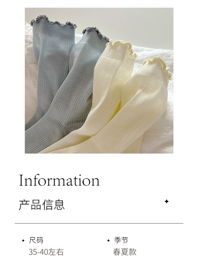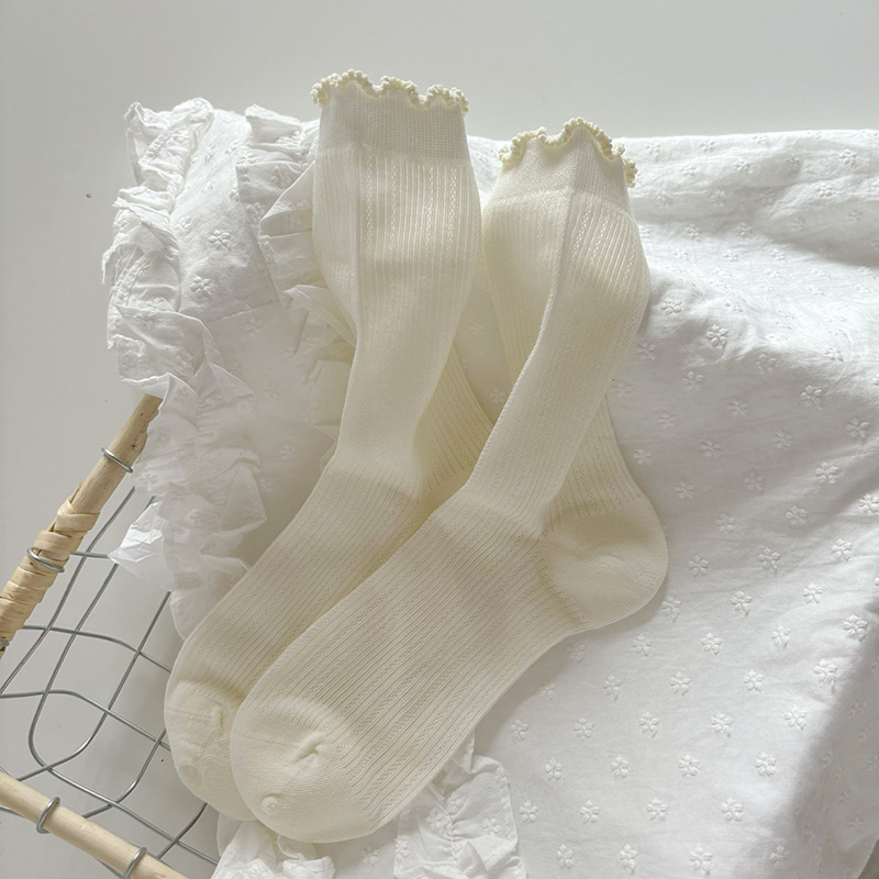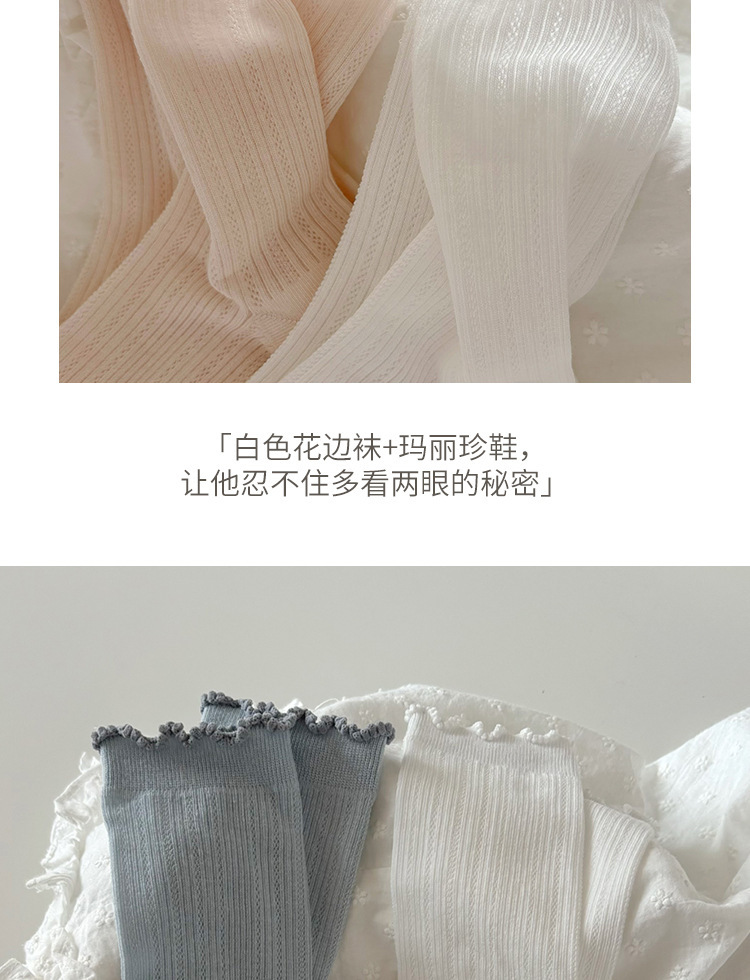 흰색 양말 여성의 여름 얇은 중공 통기성 튜브 양말 달콤한 레이스 양말 뼈없는 코튼 jk 파일 양말
