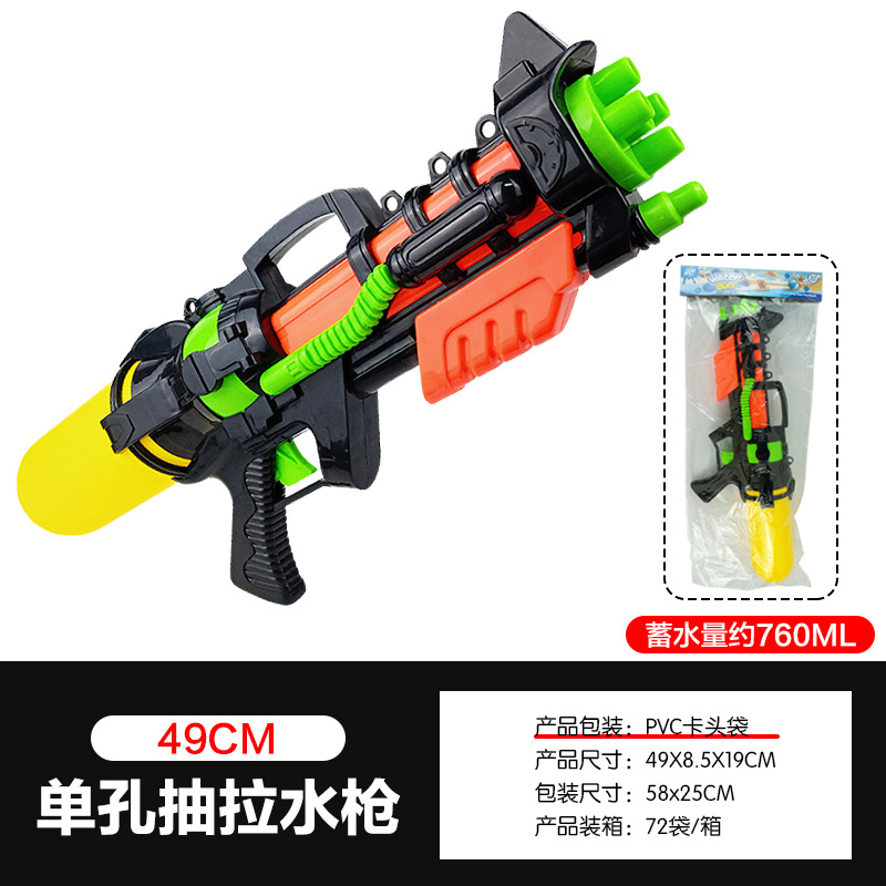 【单孔】跑男同款-抽拉打气水枪 | 760ML | 黑橙 | PVC卡头袋 | 49x8.5x19 | 58x25 | 72 | 70*51*99 |