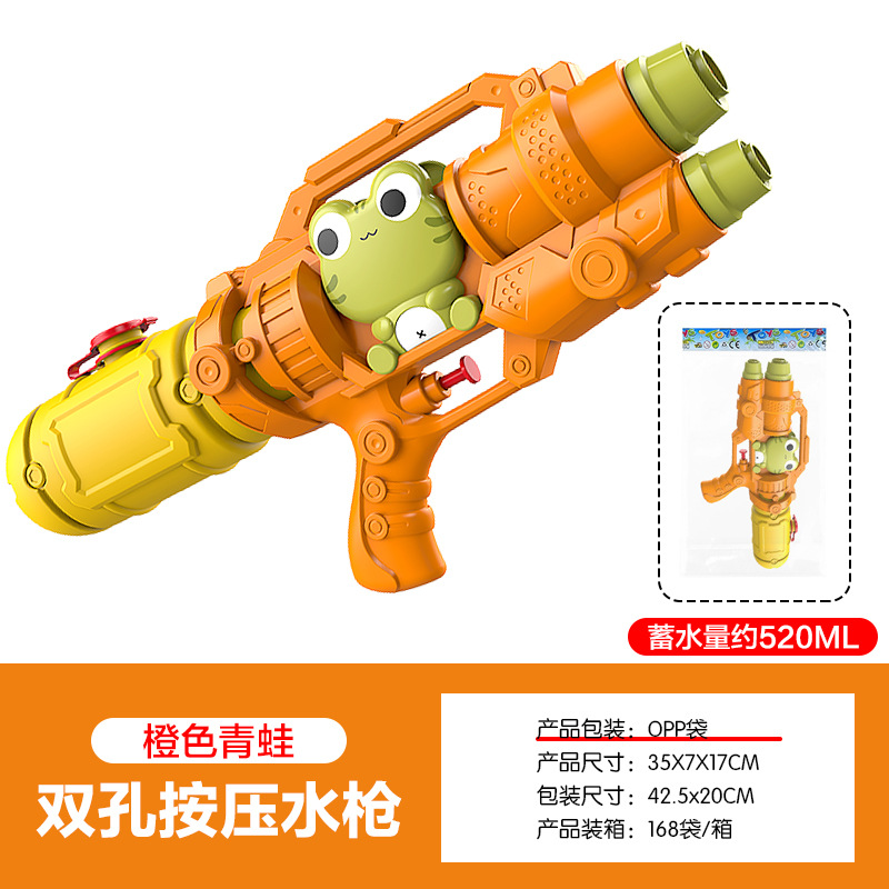 【双孔】青蛙-卡通按压水枪 | 520ML | 橙、蓝 | OPP袋 | 35x7x17 | 42.5x20 | 168 | 94*37*117 |