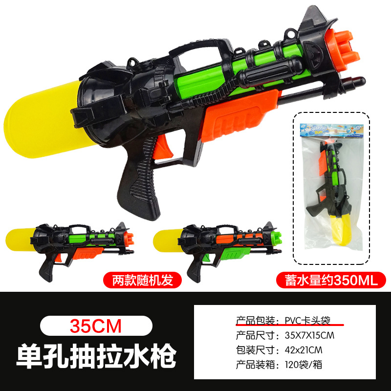 【单孔】跑男同款-抽拉打气水枪 | 352ML | 黑橙、黑绿 (颜色随机发) | PVC卡头袋 | 35x7x15 | 42x21 | 120 | 80*37*85 |