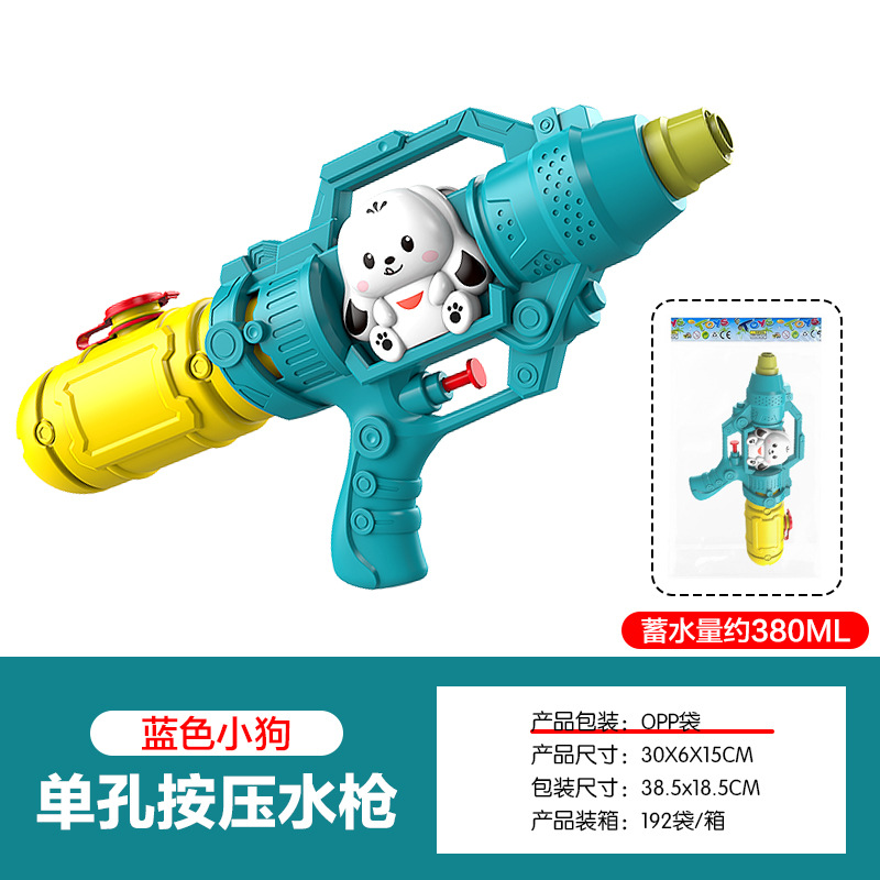 【单孔】小狗-卡通按压水枪 | 380ML | 橙、蓝 | OPP袋 | 30x6x15 | 38.5x18.5 | 192 | 86*32*121 |