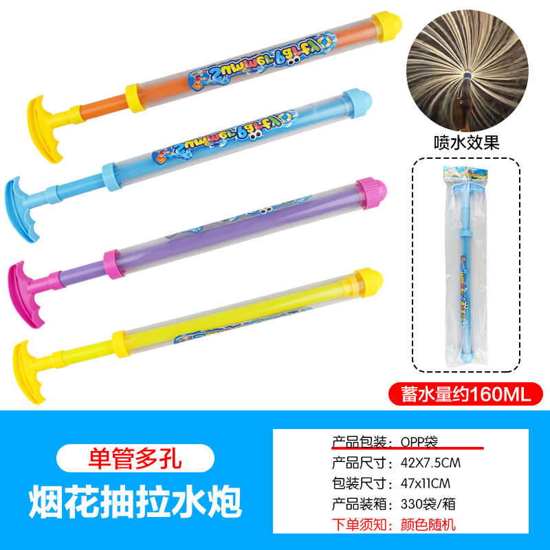 【单管】多孔-烟花抽拉水炮 | 160ML | 粉、紫、青、黄 (颜色随机发) | 裸装 | 41x7.5cm | 380 | 68*44*58 | |